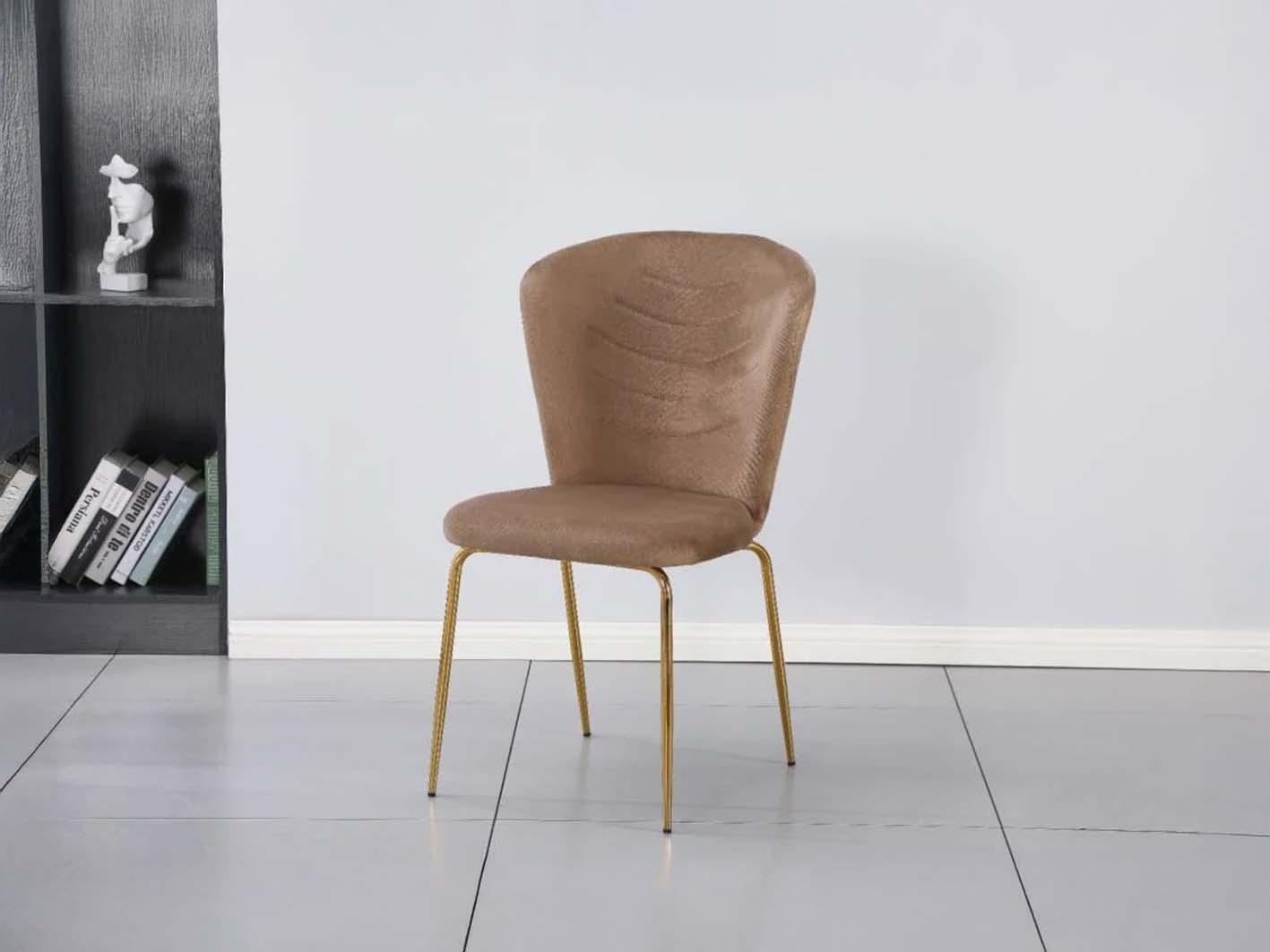 تتألق الأرجل المصنوعة من الفولاذ المقاوم للصدأ باللون الذهبي اللامع، مما يضيف بريقًا عصريًا يعكس الذوق الرفيع. صُممت الأرجل بأسلوب يمنح الكرسي ثباتًا عاليًا ومتانة تدوم طويلاً، دون التنازل عن الانسيابية والرشاقة في الشكل العام.