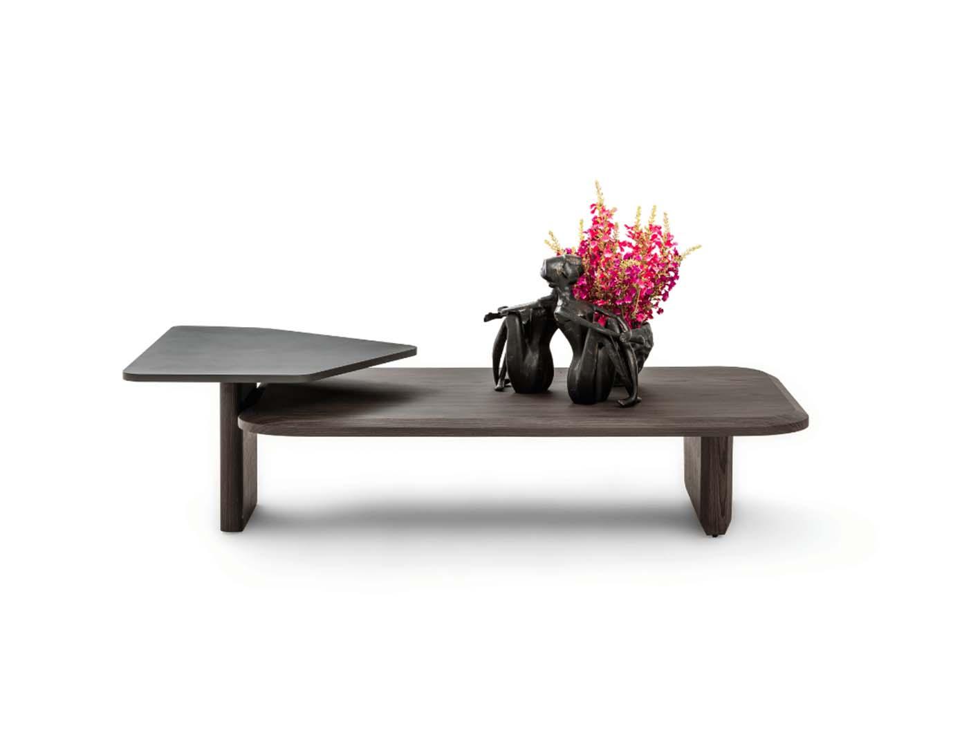 خطوط الطاولة الأنيقة والطبقات المتنوعة تجعلها قطعة محورية في غرفة المعيشة، حيث يمكن للزوار ملاحظة الأناقة والفن في تصميمها.