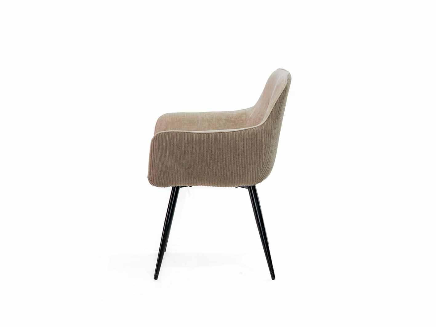 تعزز الأرجل المعدنية السوداء من متانة الكرسي، كما تمنحه طابعًا عصريًا يناسب مختلف التصاميم، من الكلاسيكي إلى المودرن. اللون الأسود غير اللامع في الأرجل يشكل توازنًا بصريًا رائعًا مع درجات القماش الدافئة، ويمنح الكرسي ثباتًا وأناقة.