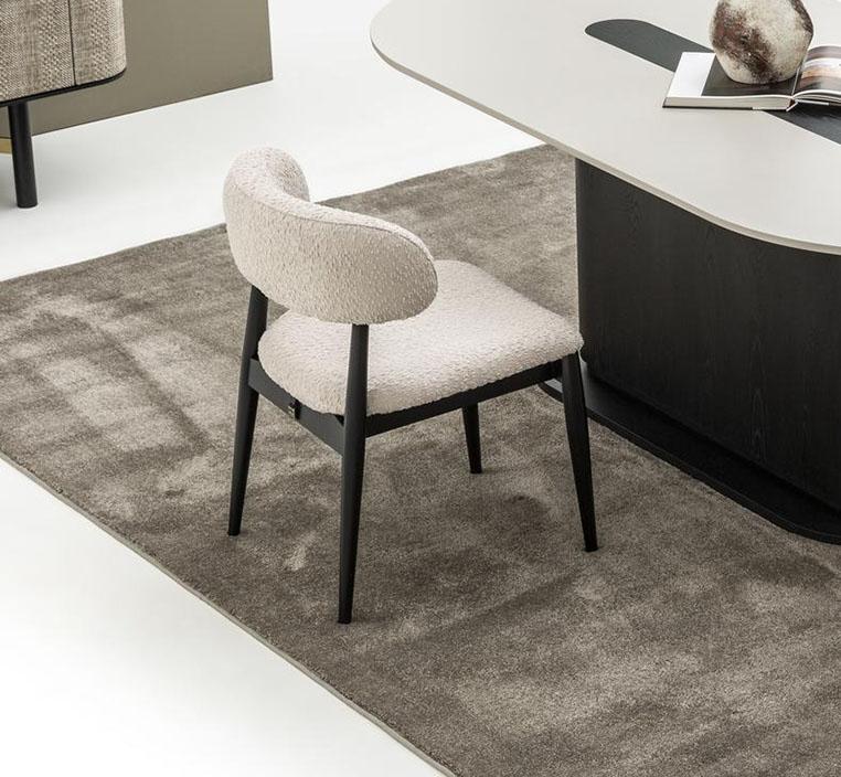 ألوان راقية: التباين بين لون القماش وخشب أسود يمنح الكرسي حضورًا بصريًا فريدًا.