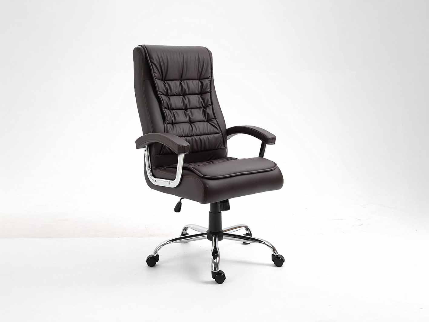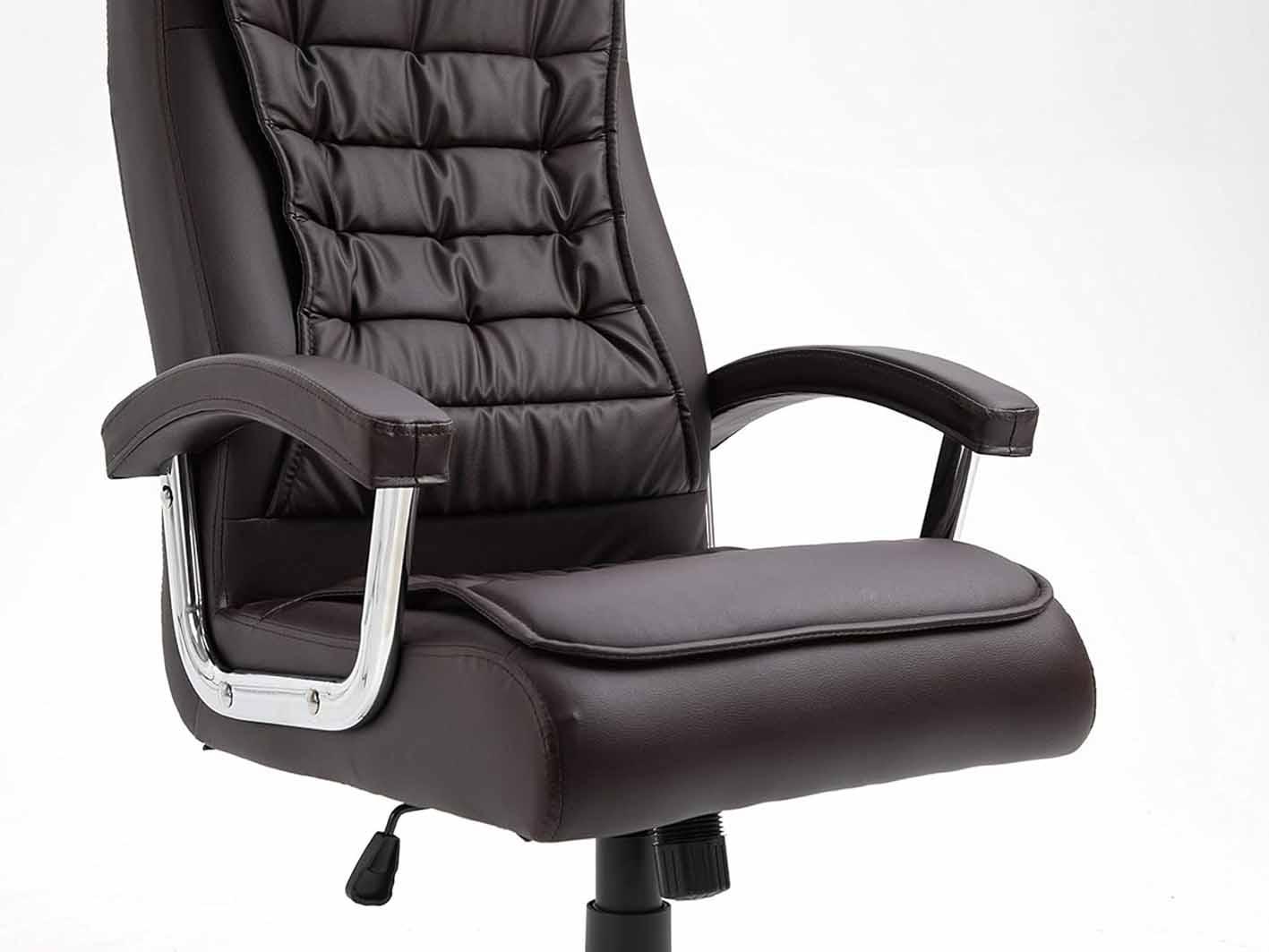 جلد فاخر باللون البني: يتمتع هذا الكرسي بتنجيد عالي الجودة من الجلد الفاخر الذي يضفي مظهرًا راقيًا ويمنح إحساسًا مريحًا ودافئًا. اللون البني الكلاسيكي يضيف لمسة من الأناقة المتطورة لأي مكتب.