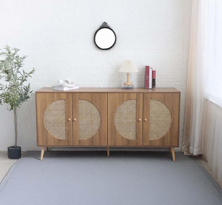 صُنع بوفيه نيارا من خشب MDF عالي الجودة، المعروف بمتانته ومقاومته للرطوبة والخدوش، ما يجعله عمليًا في الاستخدام اليومي. اللون البني الفاتح يضفي مظهرًا طبيعيًا ودافئًا يتماشى مع مختلف أنماط الديكور، بينما تعزز النقوش الهندية على الأبواب من الطابع الفني لهذه القطعة.