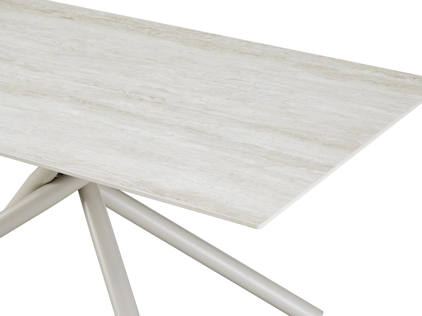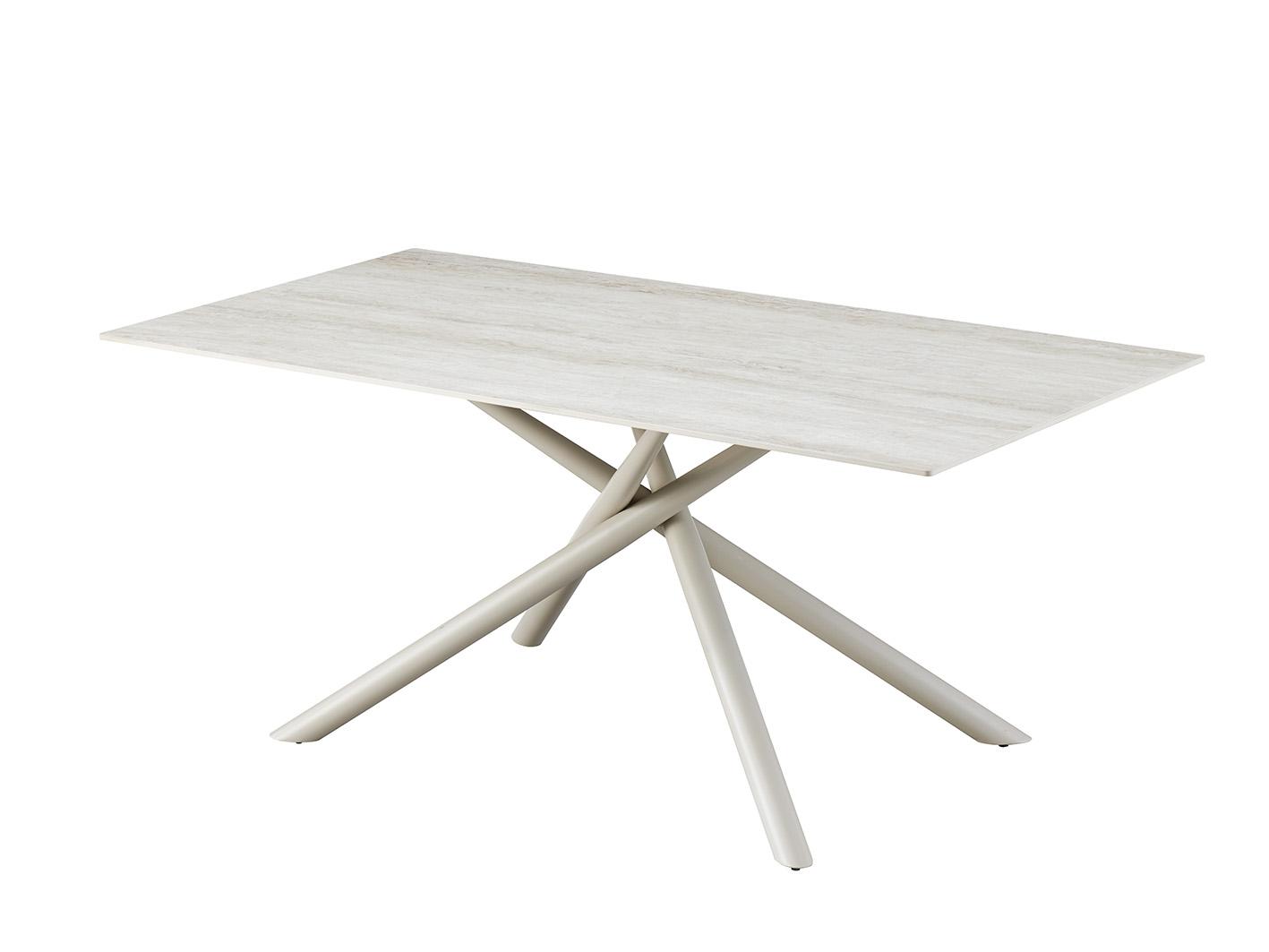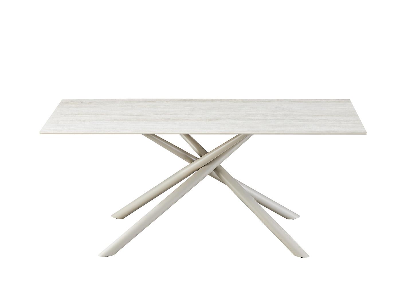 تتميز الطاولة بقاعدة معدنية من الاستيل القوي، بتصميم هندسي عصري يعزز الثبات والمظهر الجمالي. إنها واحدة من أفضل الطاولات المعدنية التي تجمع بين المتانة والتصميم الراقي.