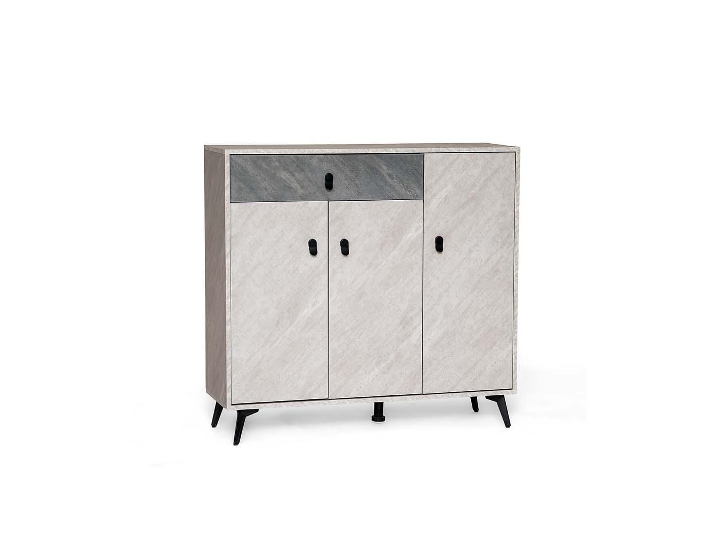 يتميز بثلاثة أبواب واسعة لتخزين الملابس والأغراض الشخصية بسهولة، بالإضافة إلى درجين داخليين مثاليين لتخزين الإكسسوارات الصغيرة مثل الأحزمة والمجوهرات والأغراض اليومية. هذا التوازن بين الأبواب والدرجين يعزز الوظيفة العملية دون التضحية بالأناقة، ويجعل كل شيء مرتبًا وفي متناول يدك.
