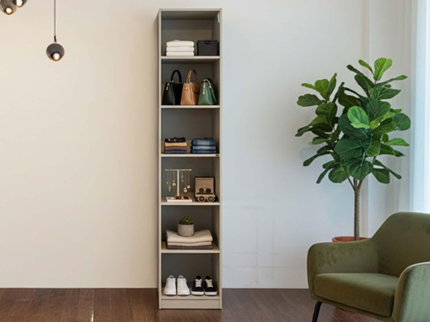 بفضل تصميمها العمودي بعرض 35 سم وعمق 60 سم وارتفاع 240 سم، تمنحك الوحدة مساحة كافية لتنظيم الكتب، الإكسسوارات، أو أدوات العمل بطريقة عملية وجذابة. كما يمكن دمجها بسهولة مع خزائن مجموعة أروبا لتكوين نظام تخزين متكامل ومخصص يلبي احتياجاتك اليومية.