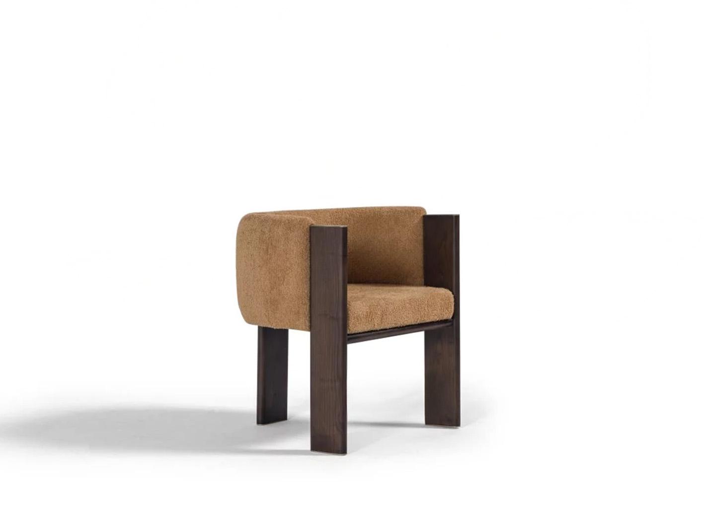 وقد تم اختيار خامة البوكليه الفاخرة بعناية لتنجيد الكرسي، حيث تمنح الملمس الناعم والإحساس بالدفء والراحة. اللون البيج الترابي يعزز من أناقة التصميم ويُكسبه مرونة في التنسيق مع مختلف الألوان والأنماط. كما يمنح نسيج البوكليه إحساسًا بالثراء الحسي ويُضفي على الكرسي طابعًا عصريًا لا يُقاوم.