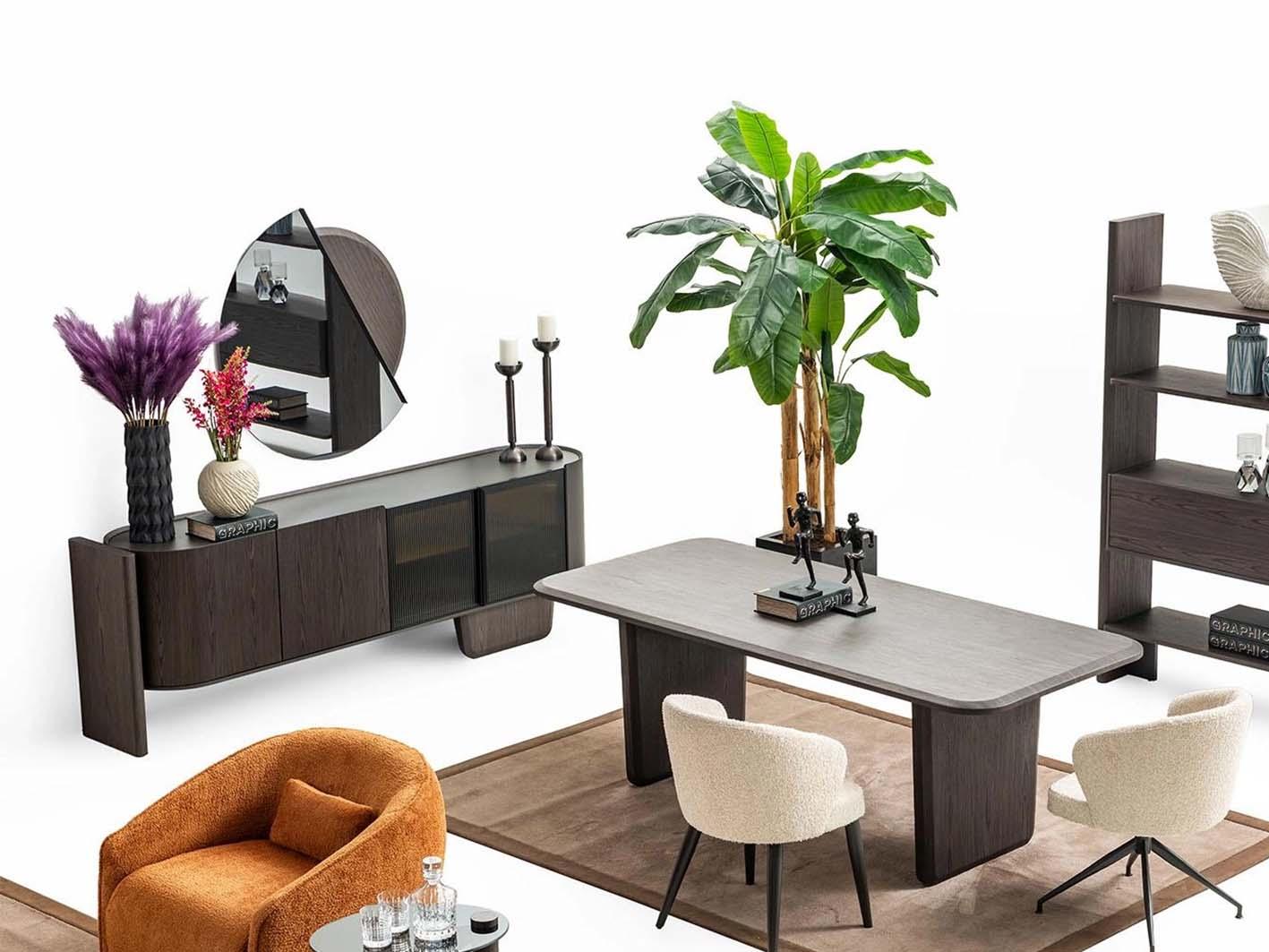 تتميز الطاولة بقدرتها على الاندماج بسلاسة مع باقي قطع مجموعة بوليرو، من الكونسول والكراسي إلى الطاولات الجانبية. هذا التناغم يخلق هوية ديكورية متكاملة تضيف لمسة موحدة من الفخامة لغرفة الطعام.