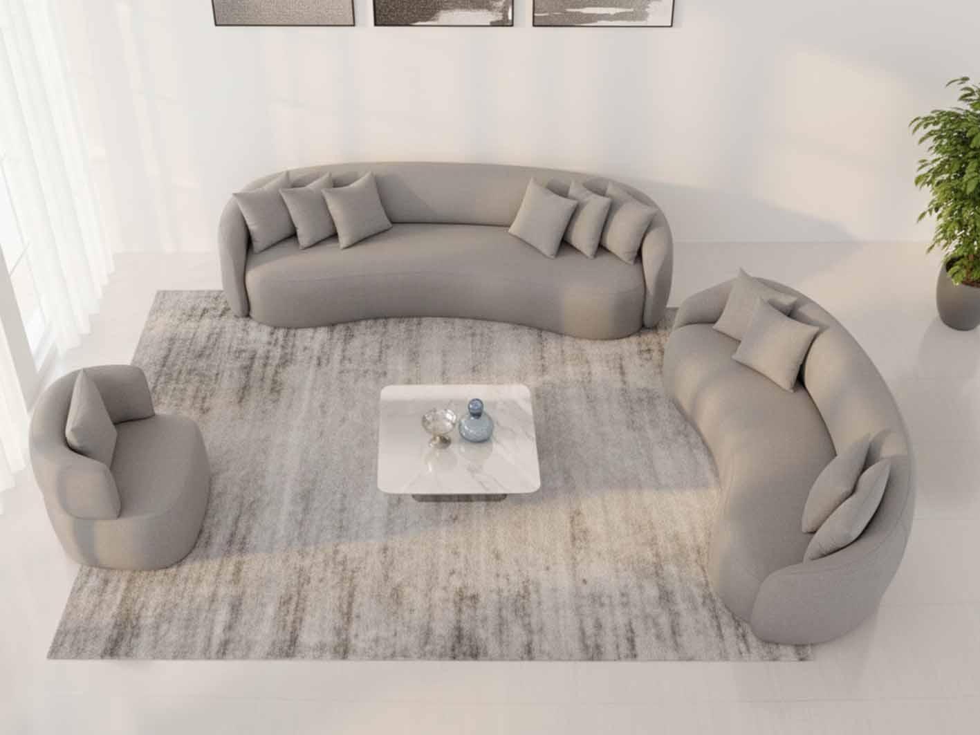 6. تناسب جميع المساحات: تصميم الطقم يجعله مناسبًا للمساحات المتوسطة والكبيرة، مع توزيع مثالي للقطع الثلاثة لتوفير تجربة جلوس متكاملة.