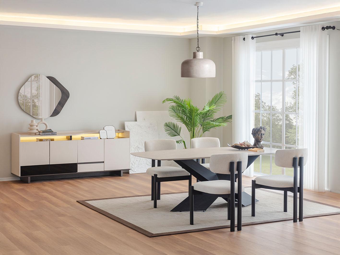 تصميم عملي وعصري: مثالي للاستخدام في مدخل المنزل أو غرف المعيشة أو أي مكان ترغب في إضفاء لمسة من الأناقة عليه (طاولة طعام بيلا).