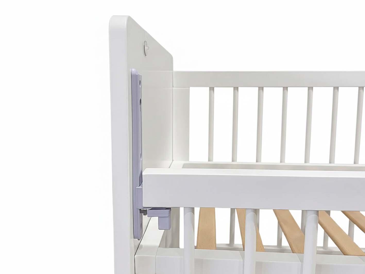 ومن أبرز مميزات السرير وجود باب جانبي يمكن فتحه بسهولة، مما يمنح الأهل مرونة كبيرة في التعامل مع الطفل، سواء أثناء حمله، أو عند ترتيب السرير، أو حتى عند وضعه للنوم دون الحاجة لرفع الطفل بشكل مرهق. هذه الميزة الذكية تجعل السرير عمليًا أكثر وتلبي احتياجات الأهل في مختلف المراحل.