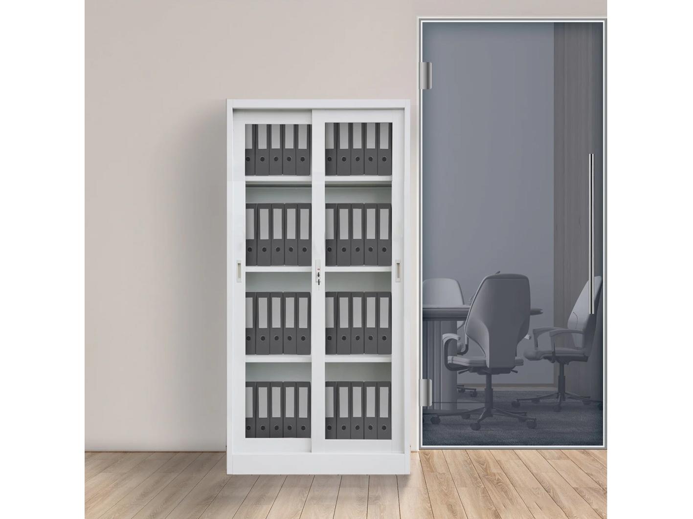 دولاب مكتبي سيكون اختيار متميز الى أثاث مكتبك بدولاب ذو البابين بواجهات زجاجية لتعطي شكل جمالي أكثر كما أنه يحتوي على العديد من الأرفف الداخلية ليكفي جميع احتياجك.