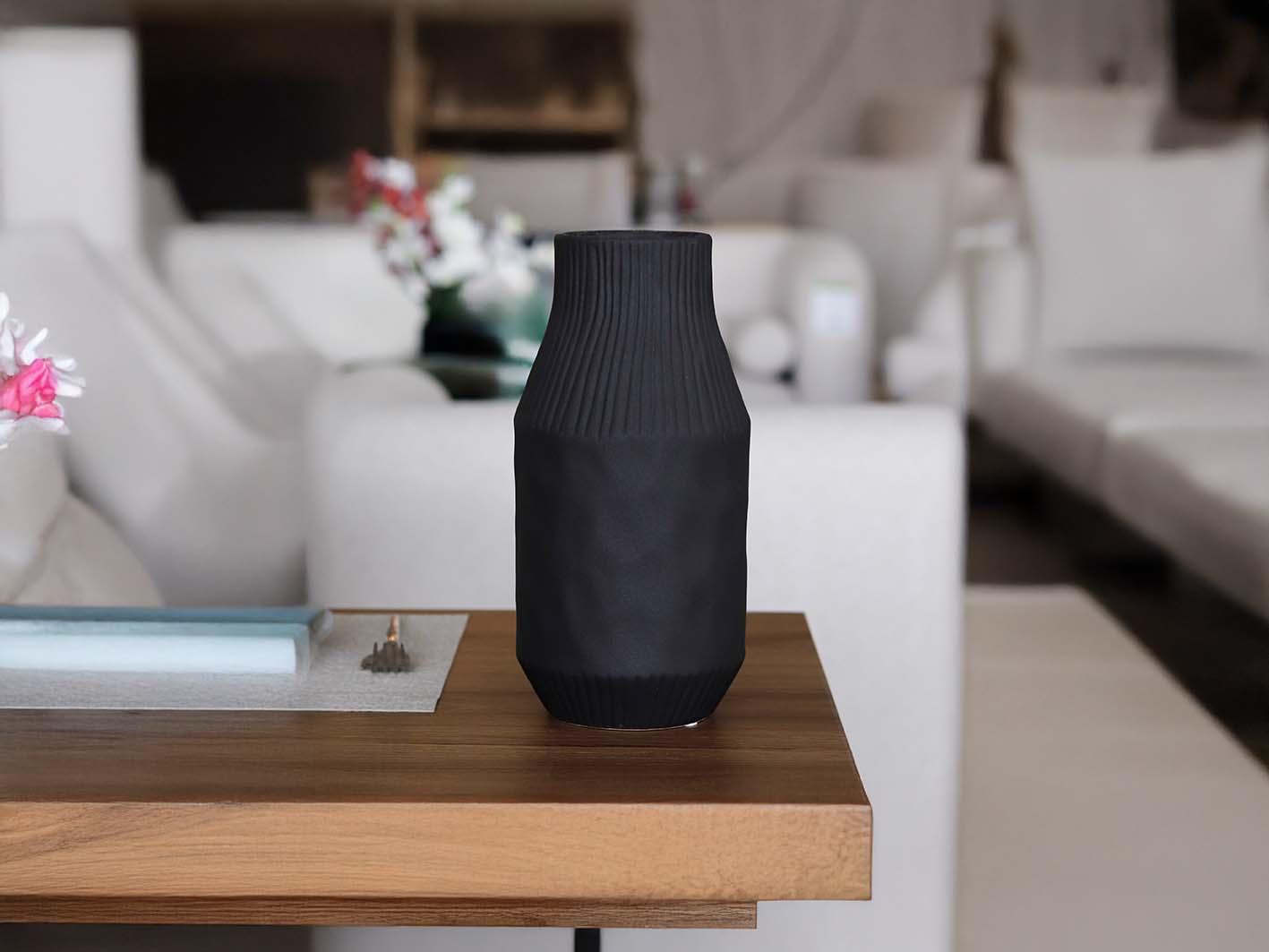 أضف لمسة من الفخامة العصرية إلى مساحتك مع هذه الفازة المصنوعة من السيراميك الفاخر باللون الأسود الأنيق. بتصميمها الانسيابي ، تضيف الفازة طابعًا مميزًا يناسب مختلف أنماط الديكور، سواءً الكلاسيكي أو الحديث. مثالية لتزيين الطاولات أو الأرفف، ويمكن استخدامها كقطعة مستقلة أو لحمل الأزهار الطبيعية أو الصناعية. خيار مثالي لعشاق الذوق الراقي والتفاصيل الدقيقة.