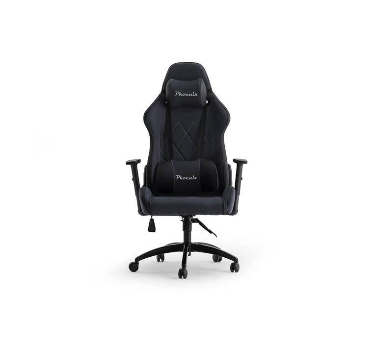 يتميز كرسي فيونكس بهيكل قوي مكوّن من صب إسفنجي من مادة البولي يوريثين أحادية الكتلة، يمنحك إحساسًا مريحًا وثباتًا لا يضاهى، مع قماش جلدي فاخر من البوليستر باللون الأسود يضفي لمسة أنيقة وعصرية تتناسب مع أي بيئة ألعاب أو مكتب.