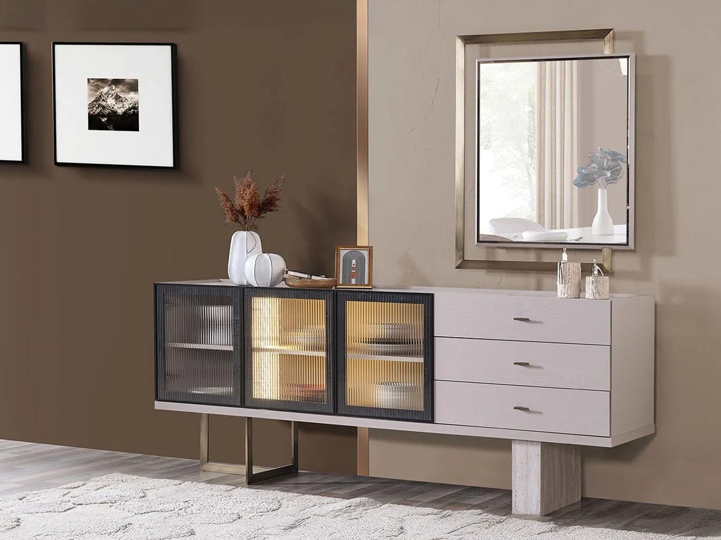 • إضاءة داخلية مدمجة: تأتي الإضاءة الداخلية لتبرز العناصر المخزنة بأسلوب جذاب، مما يمنح القطعة لمسة ساحرة ويضفي جواً من الفخامة إلى الغرفة.