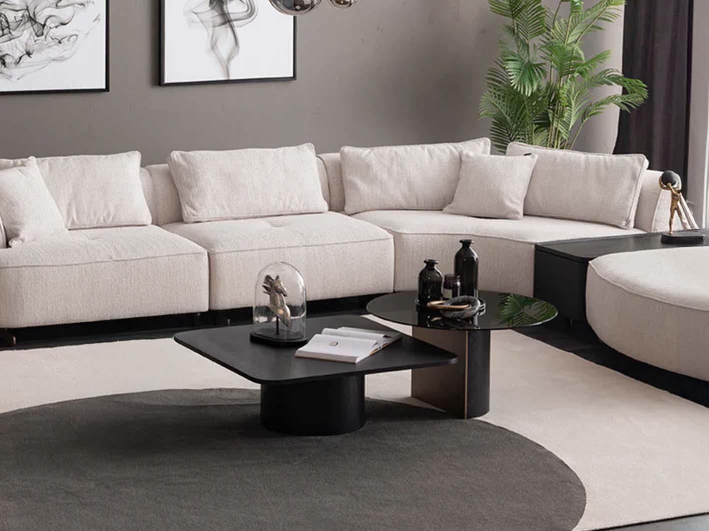 استكمل أناقة غرفة المعيشة مع طاولة القهوة بسطح زجاجي أسود دائري، التي تمزج بين البساطة والرقي في تصميم يلفت الأنظار ويمنح المساحة إحساسًا بالفخامة العصرية. هذه الطاولة هي الخيار الأمثل لمحبي التفاصيل الدقيقة والتصاميم المتقنة، حيث تجمع بين الخامات الراقية والتوازن البصري في أبهى صورة.