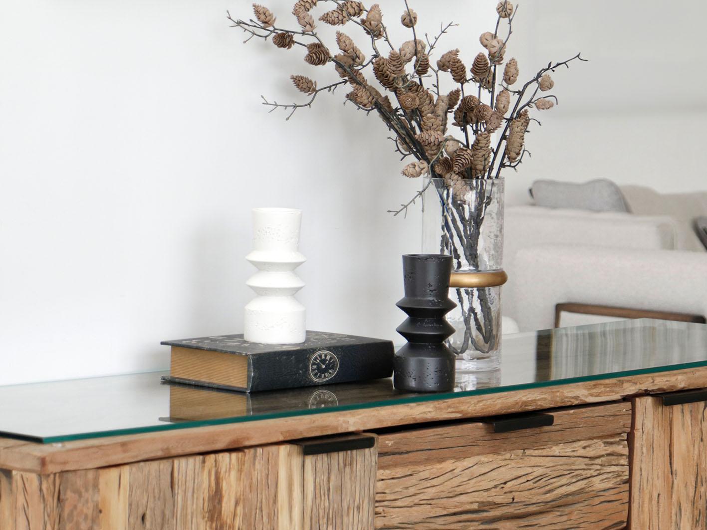 حامل شموع سيراميكي أنيق ومتميز. تصميمه الحائر بين الأشكال الهندسية والأشكال العضوية يضفي لمسة من الأناقة والتفرد. السطح الأبيض المحفور بنمط متناسق يمنح هذه القطعة رونقًا وشخصية خاصة. سيكون هذا الحامل إضافة جمالية رائعة لأي طاولة أو رف، سواء لإضافة شموع أو اعتباره قطعة ديكورية بحد ذاتها. إنه يوازن بشكل مثير للإعجاب بين البساطة والتعقيد، ما يجعله قطعة فنية رائعة تثري المساحة المحيطة بها.