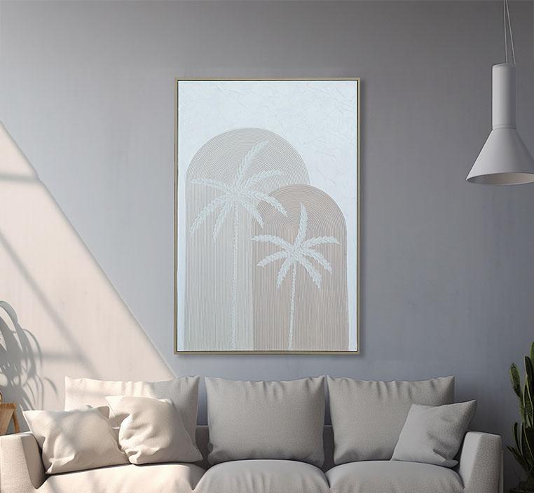 أجواء هادئة ومريحة: بفضل ألوانها الهادئة وتفاصيلها المتقنة، تساعد لوحة النخيل على خلق بيئة مثالية للاسترخاء والتأمل.