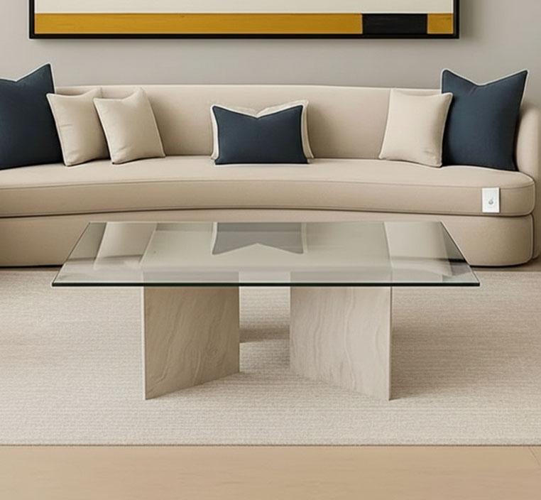 امنح غرفة المعيشة لديك إطلالة فاخرة تجمع بين الشفافية العصرية وجمال التفاصيل الطبيعية مع طاولة القهوة ليفربول ذات السطح الزجاجي. تصميمها المبتكر يعكس توازنًا مثاليًا بين المواد الفاخرة والعملية اليومية، لتكون القطعة المحورية التي تضيف رقيًّا ودفئًا لأي مساحة. بسطحها الزجاجي اللامع وقاعدتها الرخامية الطبيعية، تمنحك هذه الطاولة حضورًا أنيقًا ومظهرًا معاصرًا يليق بذوقك الرفيع.