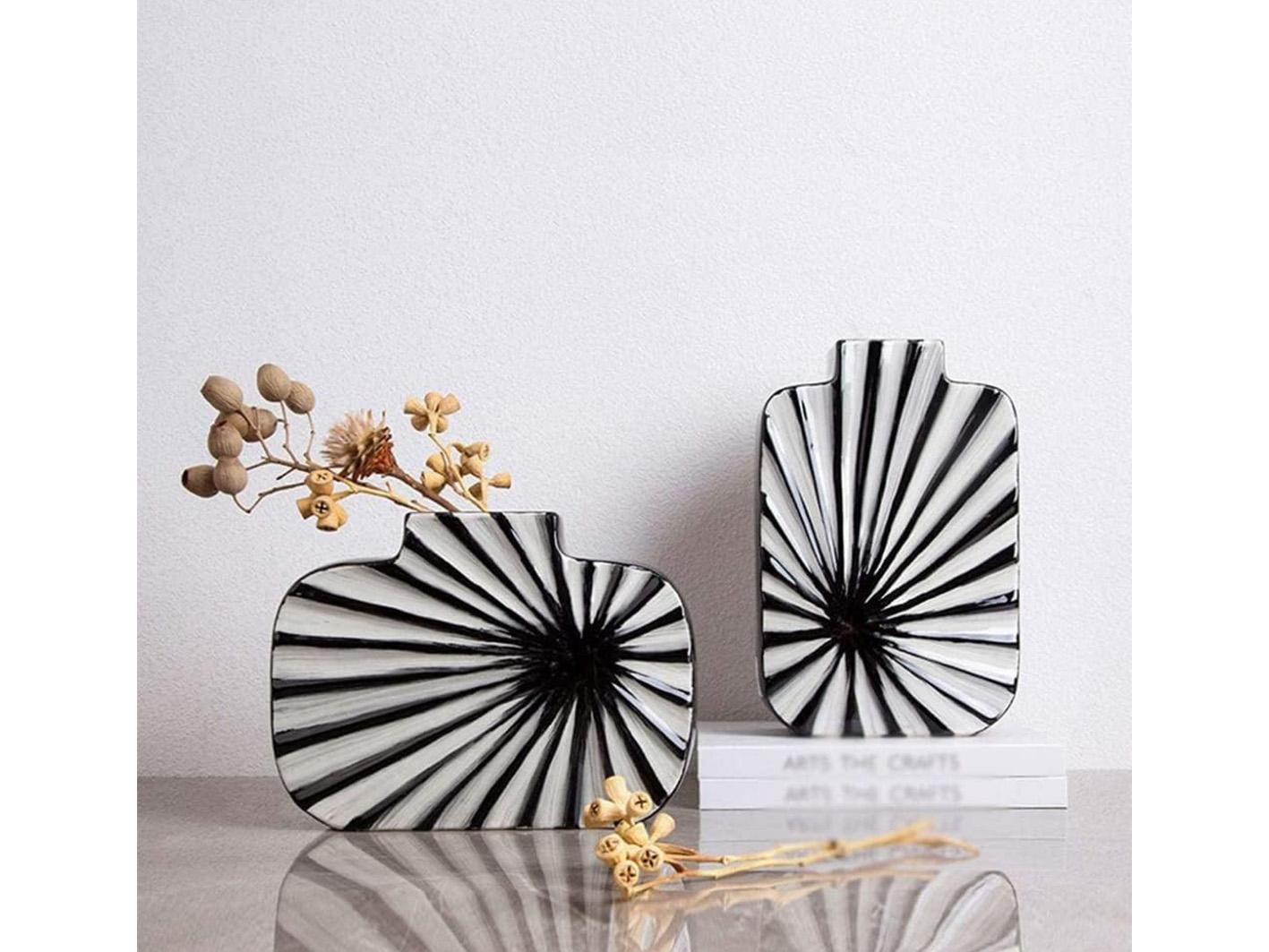 استمتع بإضافة هذه المزهرية الفريدة والأنيقة إلى تصاميمك الداخلية.تصميمها المميز من السيراميك المزخرف باللون الابيض والاسود سيضفي لمسة من الأناقة على أي غرفة. تعمل بساطة التصميم والتباين في الألوان على خلق جو جذاب ومهدئ للعين. يتيح لك التنوع في استخدامها وضعها في مختلف البيئات، من غرف المعيشة إلى مناطق تناول الطعام، مما يجعلها إضافة متعددة الاستخدامات لأي منزل.