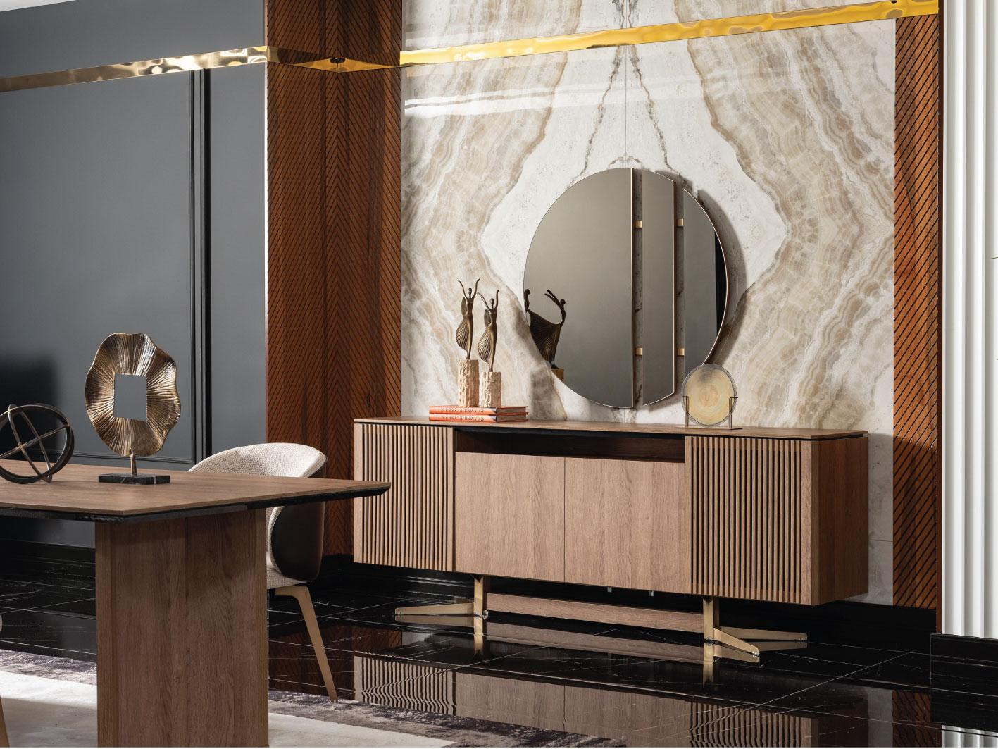هل تحتاج الى مساحة تخزين أكبر قليلاً في غرفة المعيشة و ترغب في إضافة تصميم جديد و جذاب في منزلك؟ يجب عليك القاء نظره على نيو لزبون كونسول مع مرايا الذي تتميز بتصميمه الجذاب و المميز عالي الجودة لتوفير مساحة لتخزين كل شيء من الاواني المنزلية او الكتب او اي شيء تريد تخزينه و الابواب مزودة بقفل مغناطيسي و لا داعي للقلق يمكنك ادخال هذه الخزانة في اي تصميم لانه يمتاز بتصميمه الطبيعي و سينسجم مع الانماط المختلفة