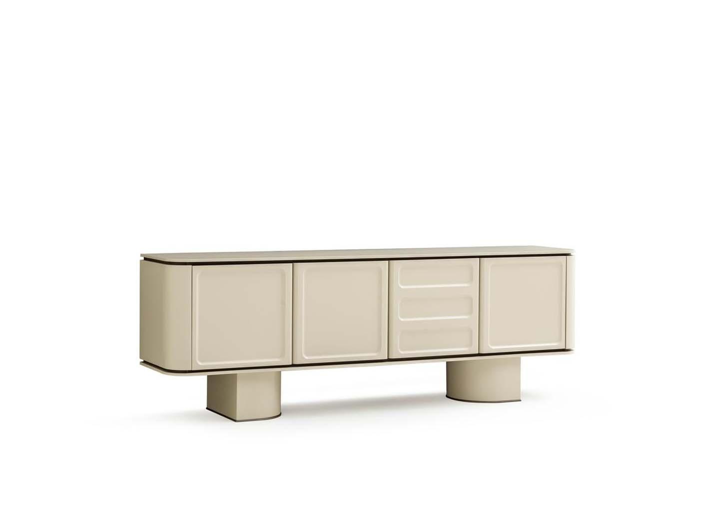 تفاصيل معمارية فريدة: القواعد الأسطوانية تضفي لمسة جمالية مميزة، مما يعزز جاذبية الكونسول ويضيف لمسة فنية للغرفة.