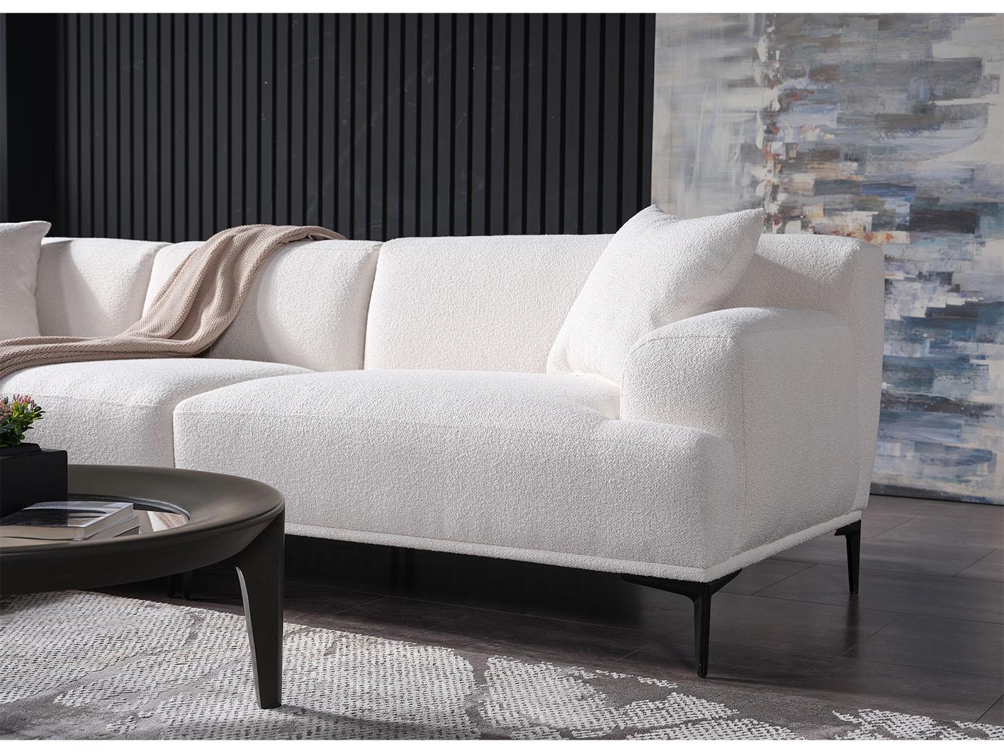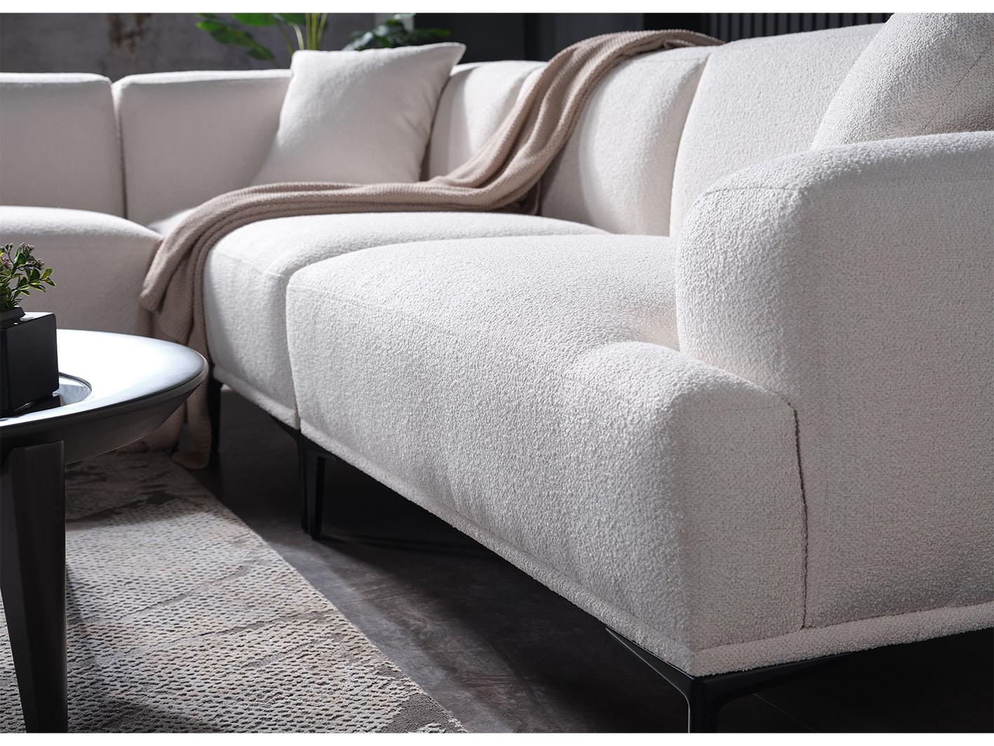 تم تصميم نيويورك كنب زاوية يد يسار بوسائد من الرغوة عالية الكثافة التي توفر دعمًا مثاليًا للجسم، مما يجعل الجلوس عليها تجربة مريحة طوال اليوم. بالإضافة إلى ذلك، يغطيها قماش ناعم وعملي بلون أبيض نقي، ما يمنحها مظهرًا مشرقًا وعصريًا يتناسب مع مختلف أنماط الديكور الداخلي.