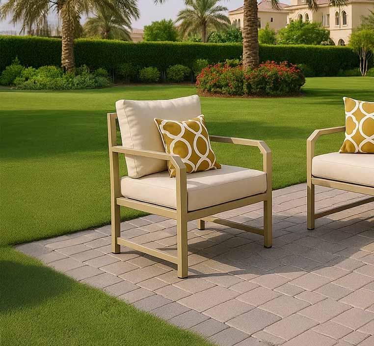 نيس الجلسة الخارجية الفردية هي الخيار الأمثل لمن يبحث عن الجمع بين الراحة والذوق الراقي في المساحات الخارجية. بتصميم عصري أنيق ولون بيج هادئ يضفي لمسة من الدفء والانسجام، تصبح هذه الجلسة إضافة فاخرة لحديقتك، فناء منزلك أو حتى شرفتك الصغيرة.