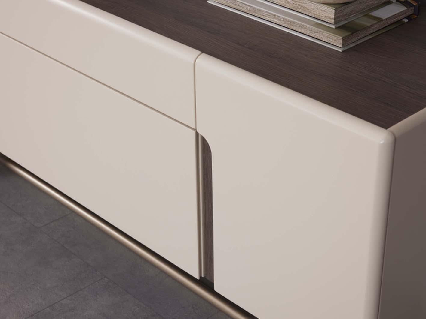يعتمد تصميم الكونسول على قاعدة قوية تمنحه ثباتاً مثالياً، مع خطوط انسيابية تضيف لمسة عصرية. الأرجل مصممة بعناية باستخدام الخشب والمعدن، ما يوازن بين القوة والرشاقة، ويجعل القطعة مناسبة للاستخدام اليومي.