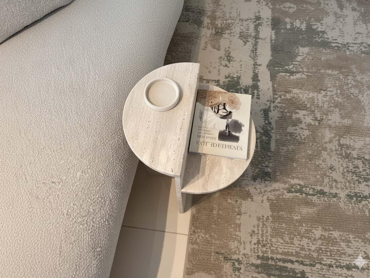 تأتي طاولة ريفولي بتصميم أنيق يجمع بين الجمال العملي واللمسة الطبيعية الراقية. سطحها العلوي المصنوع من الحجر التركي الفاخر يضفي إحساسًا بالفخامة والرقي، بينما تتكامل القاعدة بتصميمها المتين لتضفي على المكان توازنًا بصريًا جذابًا. أبعاد الطاولة المدروسة تجعلها مناسبة بجانب الأريكة أو السرير، لتكمل جمال المساحة بأسلوب راقٍ.