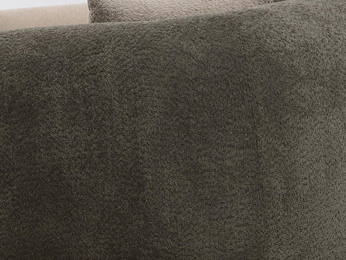 الهيكل الداخلي مصنوع من خشب الـ PLYWOOD عالي الجودة لضمان المتانة وطول العمر، بينما تأتي الأرجل المعدنية بتشطيب ذهبي مصقول (Brushed Gold)، لتمنح الكنبة طابعًا فخمًا يعكس الذوق الرفيع.