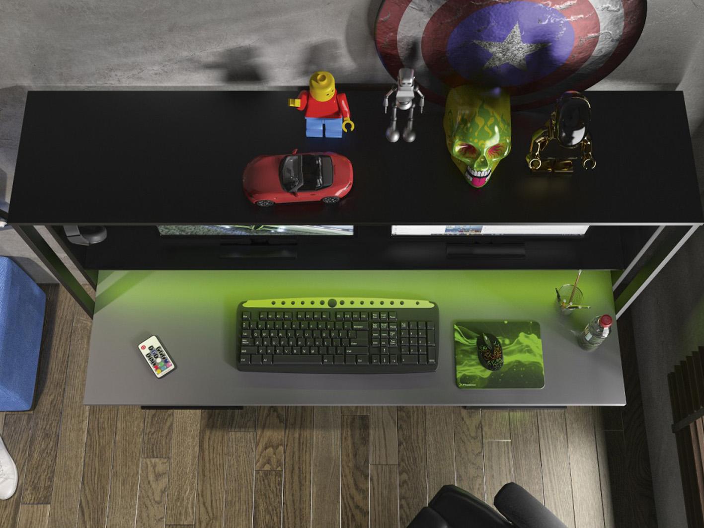 إضاءة خلفية مدمجة: لإضافة لمسة من الأناقة والتشويق إلى غرفة الألعاب الخاصة بك، يأتي المكتب مزودًا بإضاءة خلفية LED مدمجة تُضفي جوًا مثيرًا أثناء اللعب الليلي.