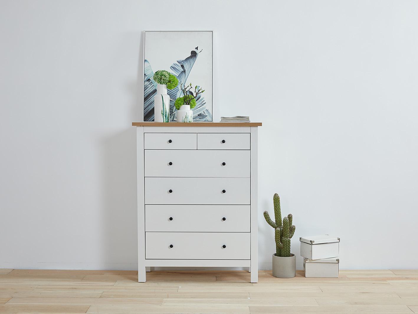 تُصنع هذه المجموعة من الخشب الطبيعي عالي الجودة المعروف بمتانته، مع تشطيب ميلامين أبيض يمنحك مظهرًا عصريًا ولامعًا سهل التنظيف، ليتناسب مع كل ديكورات غرف النوم.