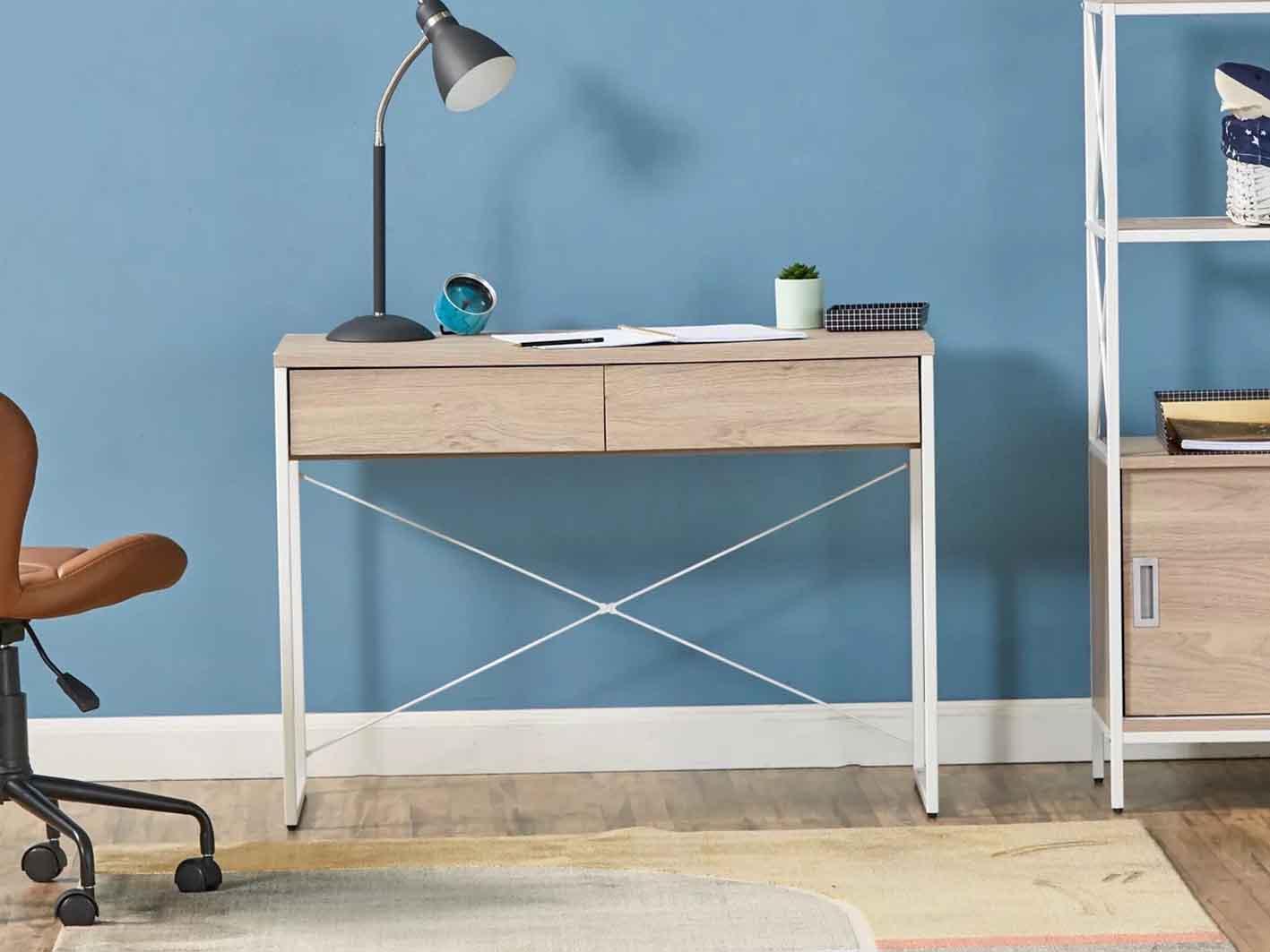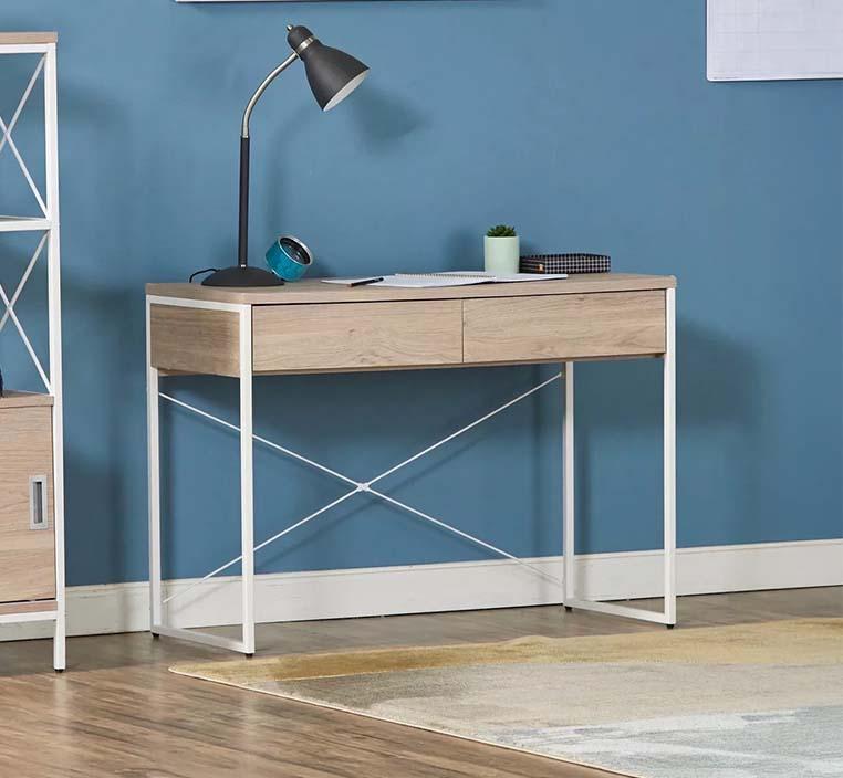صُنع المكتب من MDF متين لضمان متانة طويلة، بينما تعزز قاعدة وأرجل المعدن الثبات والاستقرار.