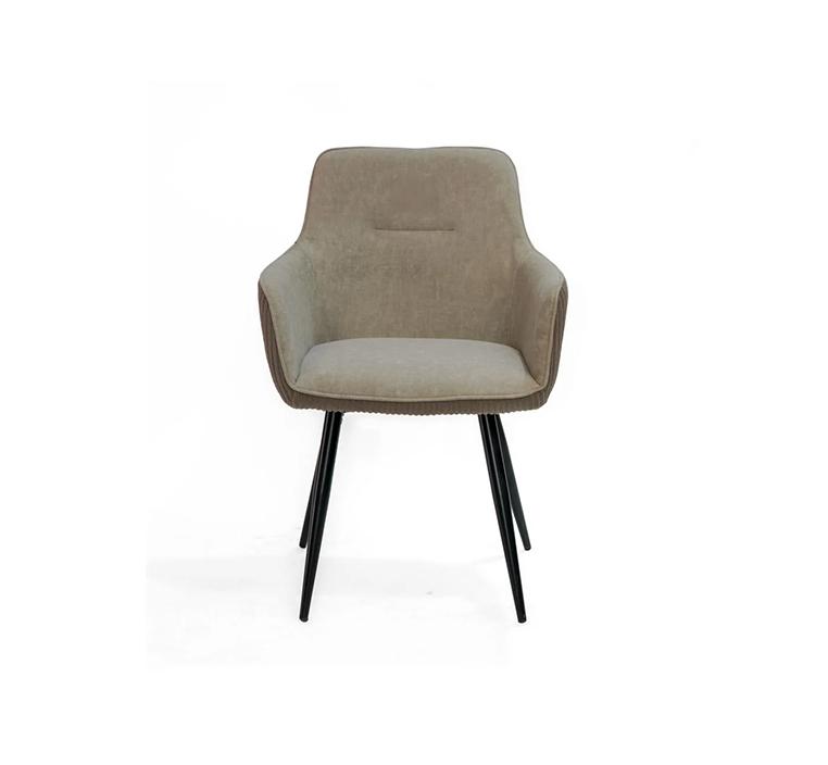 طاولة طعام مخمل – قماش بيج وبني – أرجل معدن أسود – كرسي طعام أنيق عصري