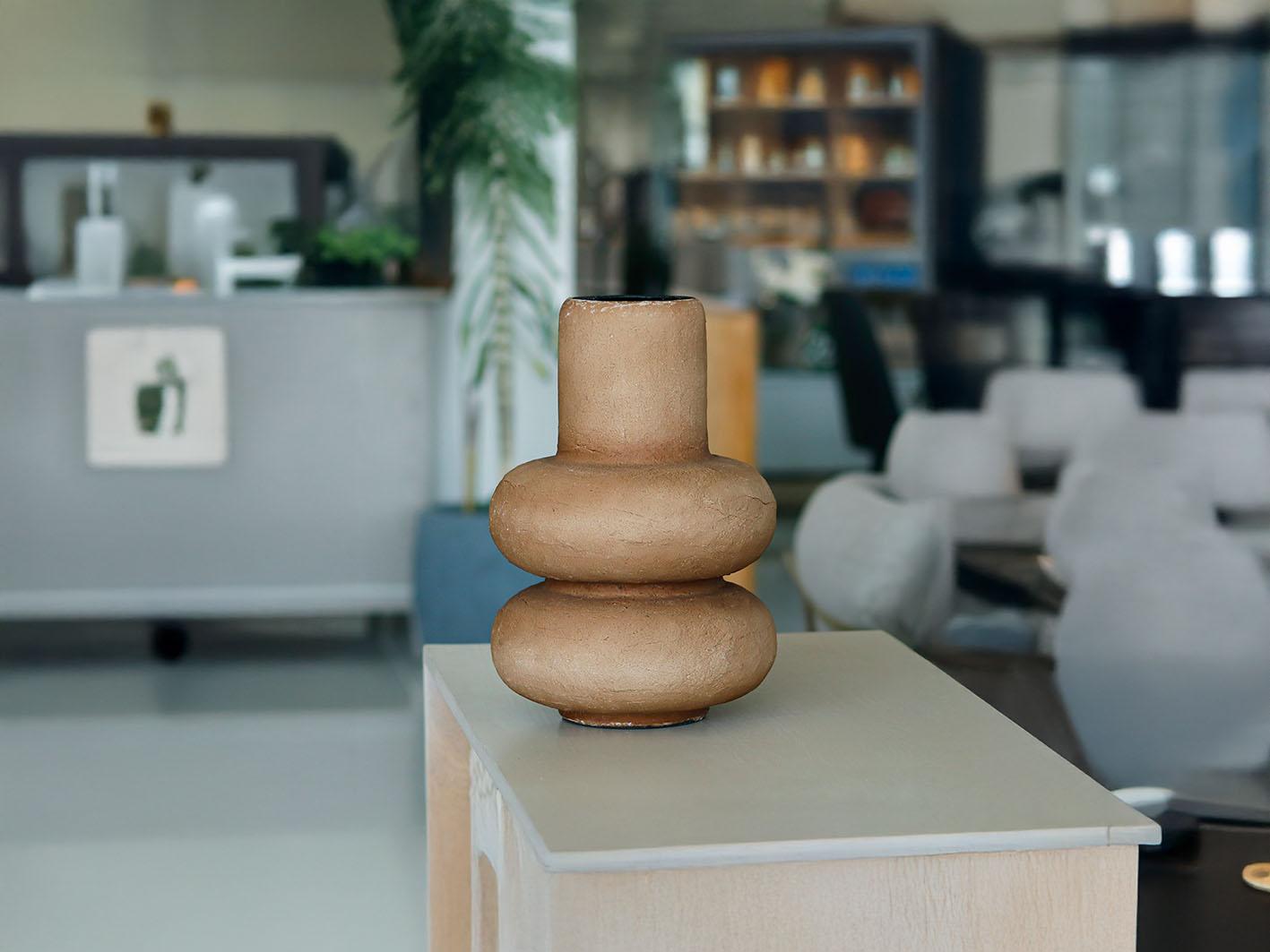 أضف لمسة من الأناقة الهادئة والأسلوب البوهيمي العصري إلى ديكور منزلك مع فازة الديكور السيراميك البوهيمي الفريدة بلونها البني الفاخر. تتميز بتصميمها العضوي الانسيابي وتفاصيلها الخشنة التي تضفي إحساسًا بالدفء والبساطة الراقية.فازة مثالية لعشاق الطراز البوهيمي والمينيمالي، يمكن استخدامها كقطعة ديكور قائمة بذاتها أو لتزيينها بفروع خضراء طبيعية أو صناعية.