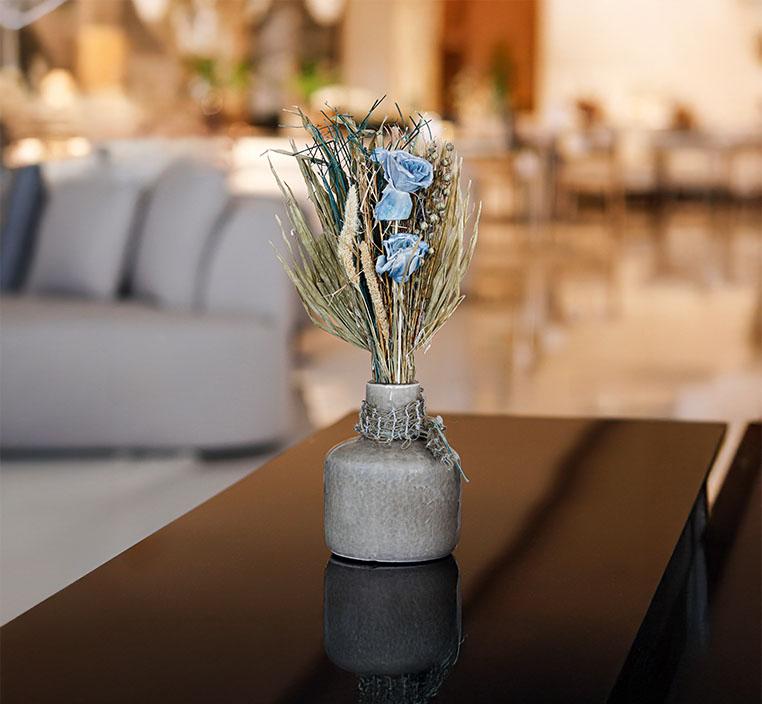 أضف لمسة فنية راقية إلى مساحتك مع هذه الفازة الصغيرة المصنوعة من السيراميك الطبيعي، والمزينة بتنسيق أنيق من الورد المجفف بألوان هادئة. تصميمها المدمج يجعلها مثالية للطاولات الجانبية، المكاتب، أو الرفوف الصغيرة. تنسجم بسهولة مع مختلف أنماط الديكور وتضفي إحساسًا بالدفء والرقي في كل زاوية. خيار مثالي لعشاق التفاصيل الناعمة والهدايا الفريدة.