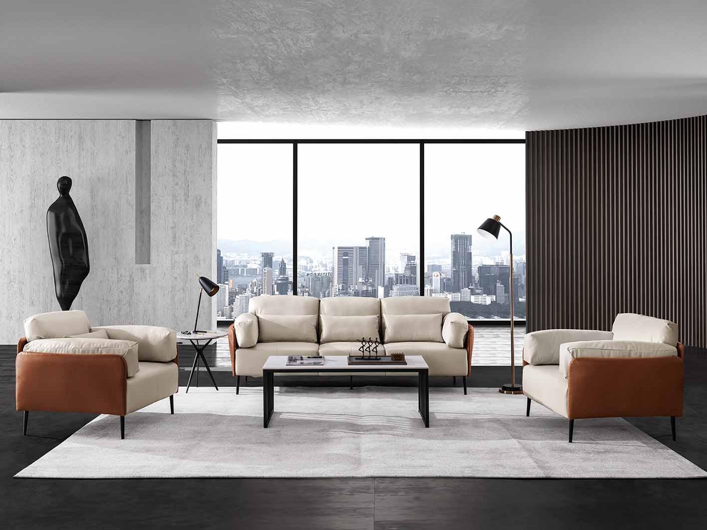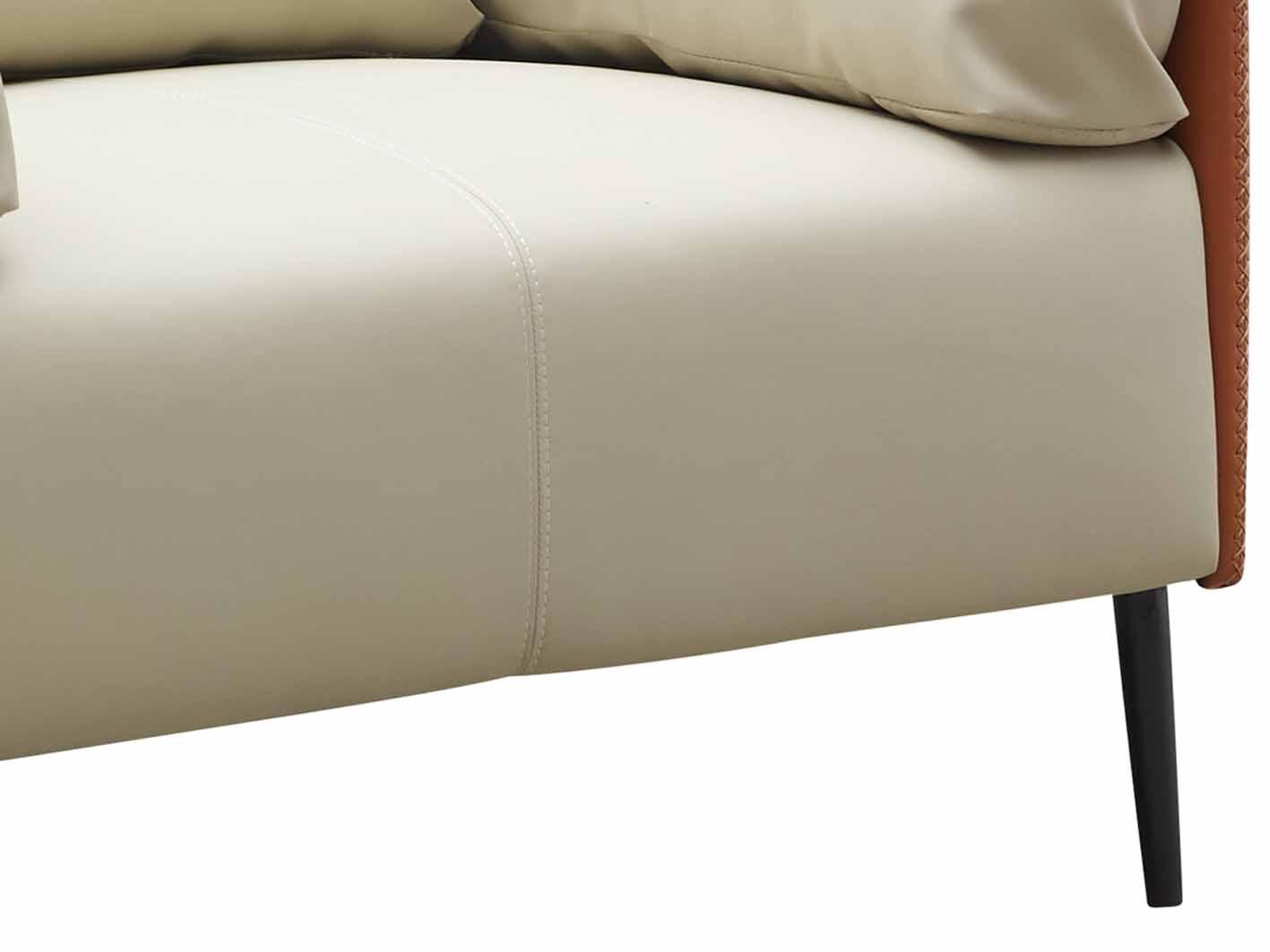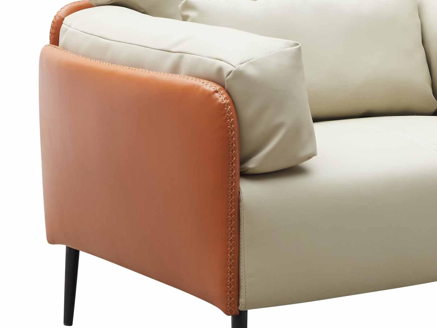 أما التنجيد، فهو مصنوع من PVC عالي الجودة، يتميز بسهولة التنظيف ومقاومته للبقع، مما يجعله خيارًا عمليًا للمكاتب والأماكن ذات الاستخدام المتكرر. اللون البيج الأنيق يتناغم مع التفاصيل البنية ليمنح الكنب مظهرًا متوازنًا يجمع بين الفخامة والبساطة. كما أن كثافة الإسفنج بضغط 35 توفر جلوسًا ناعمًا وداعمًا في الوقت نفسه، دون أن يفقد الكنب تماسكه.
