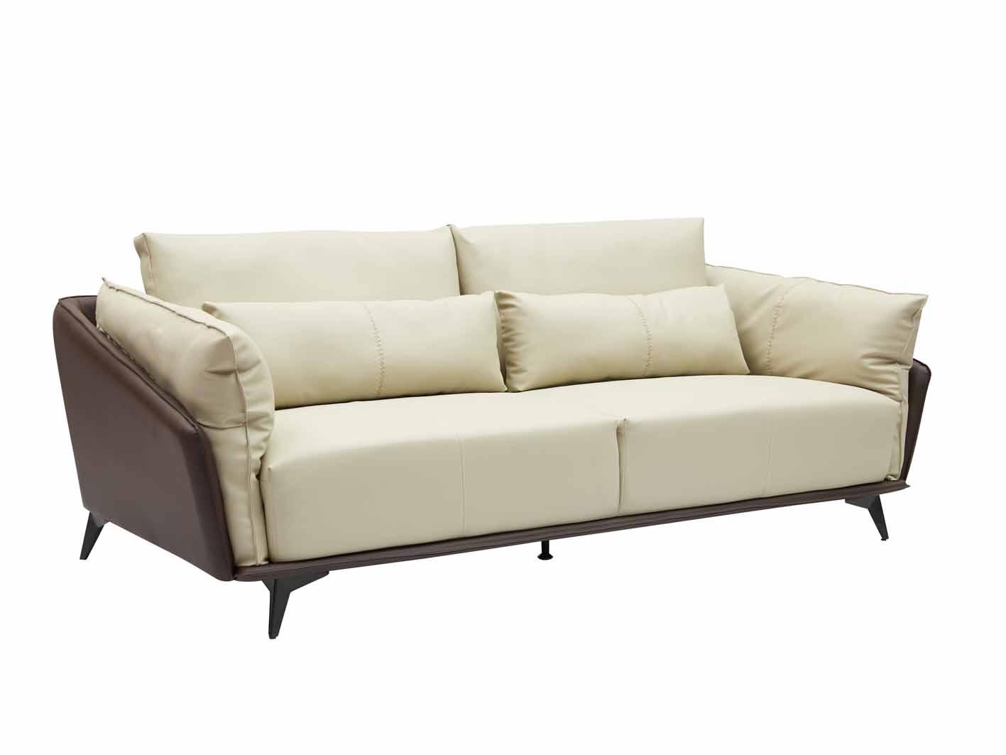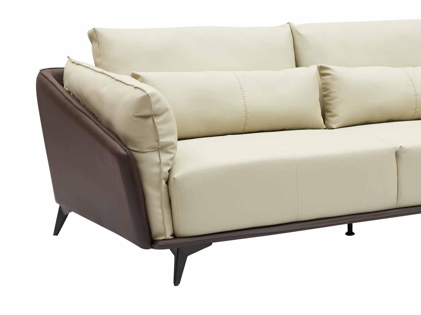 الجمع بين لون الأذرع والظهر البني H20 والمقعد والوسائد البيج 1102-5 يمنح الكنب حضورًا راقيًا ومتوازنًا بصريًا.