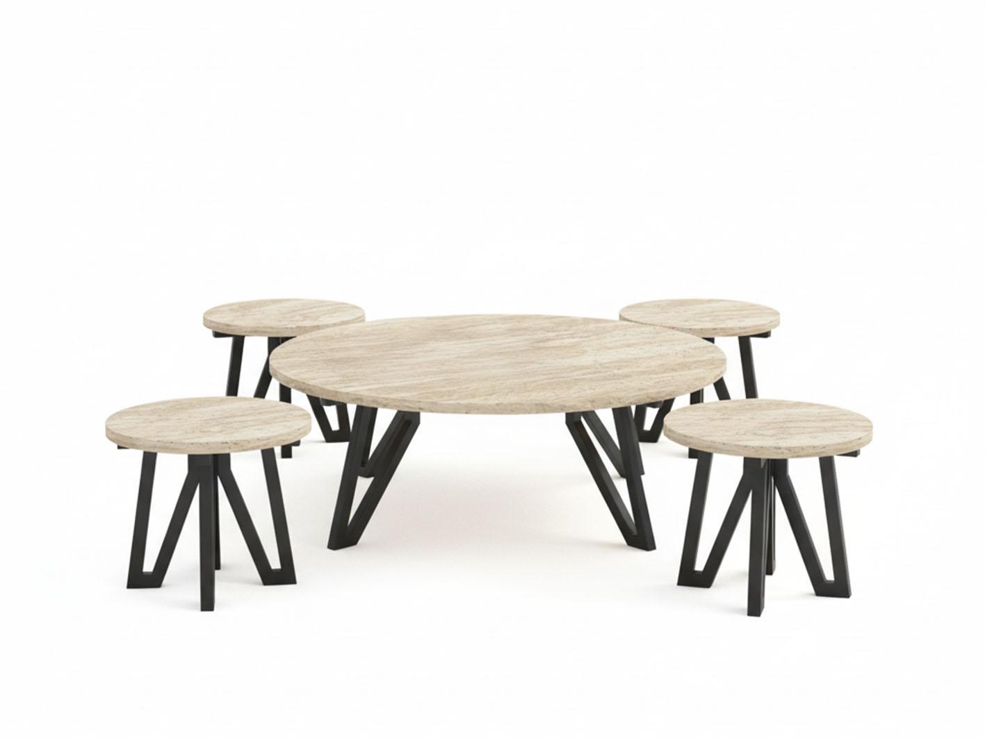 يتضمن الطقم 5 قطع: طاولة كبيرة بمقاس 8030 سم وطاولة صغيرة بمقاس 3025 سم. هذا التنوع يسهل ترتيب القطع حسب احتياجاتك ومساحة المكان.
