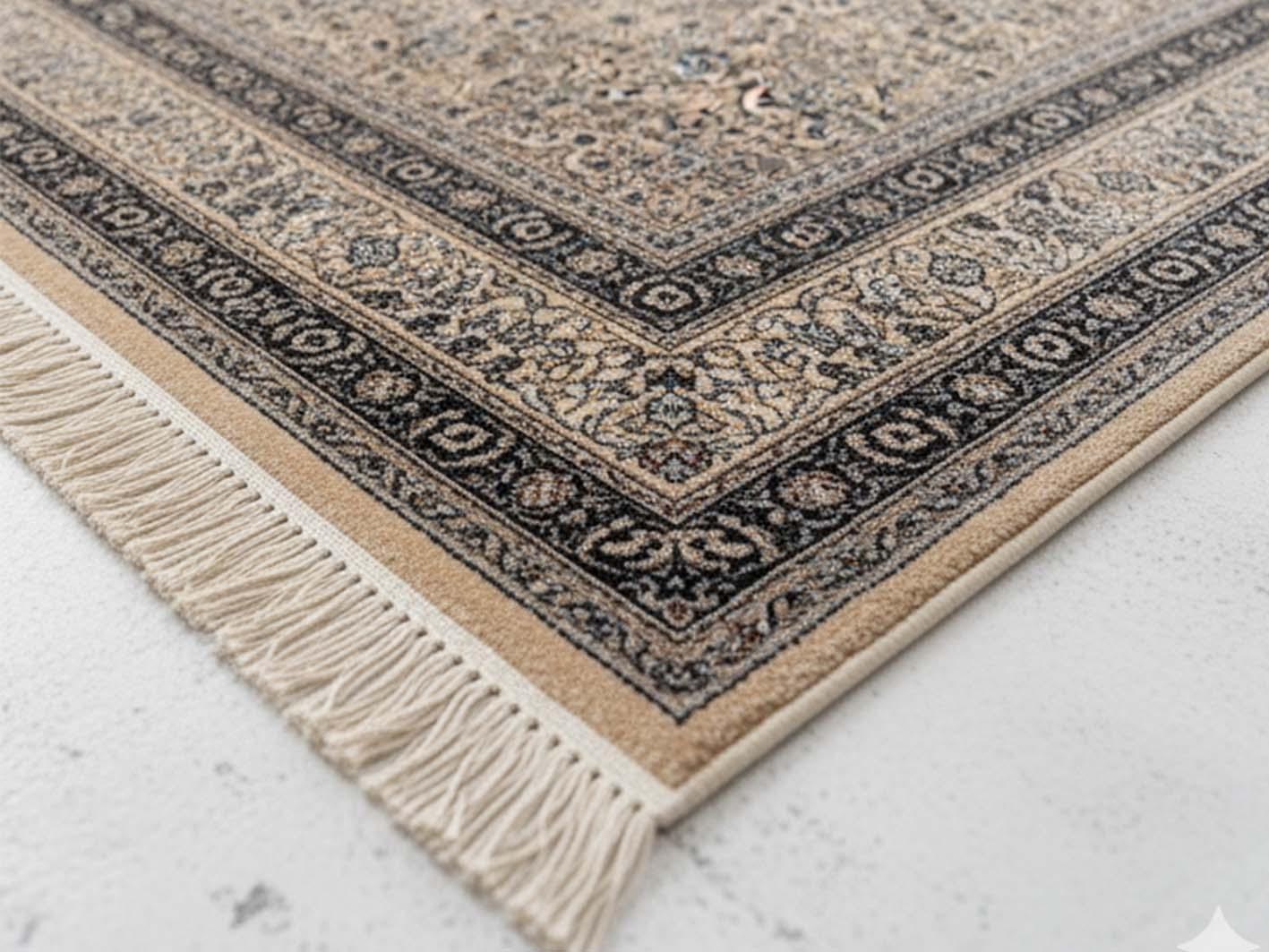 كما يبرز الإطار متعدد الزخارف تفاصيل الوسط ويعطي السجادة لمسة كلاسيكية جذابة.