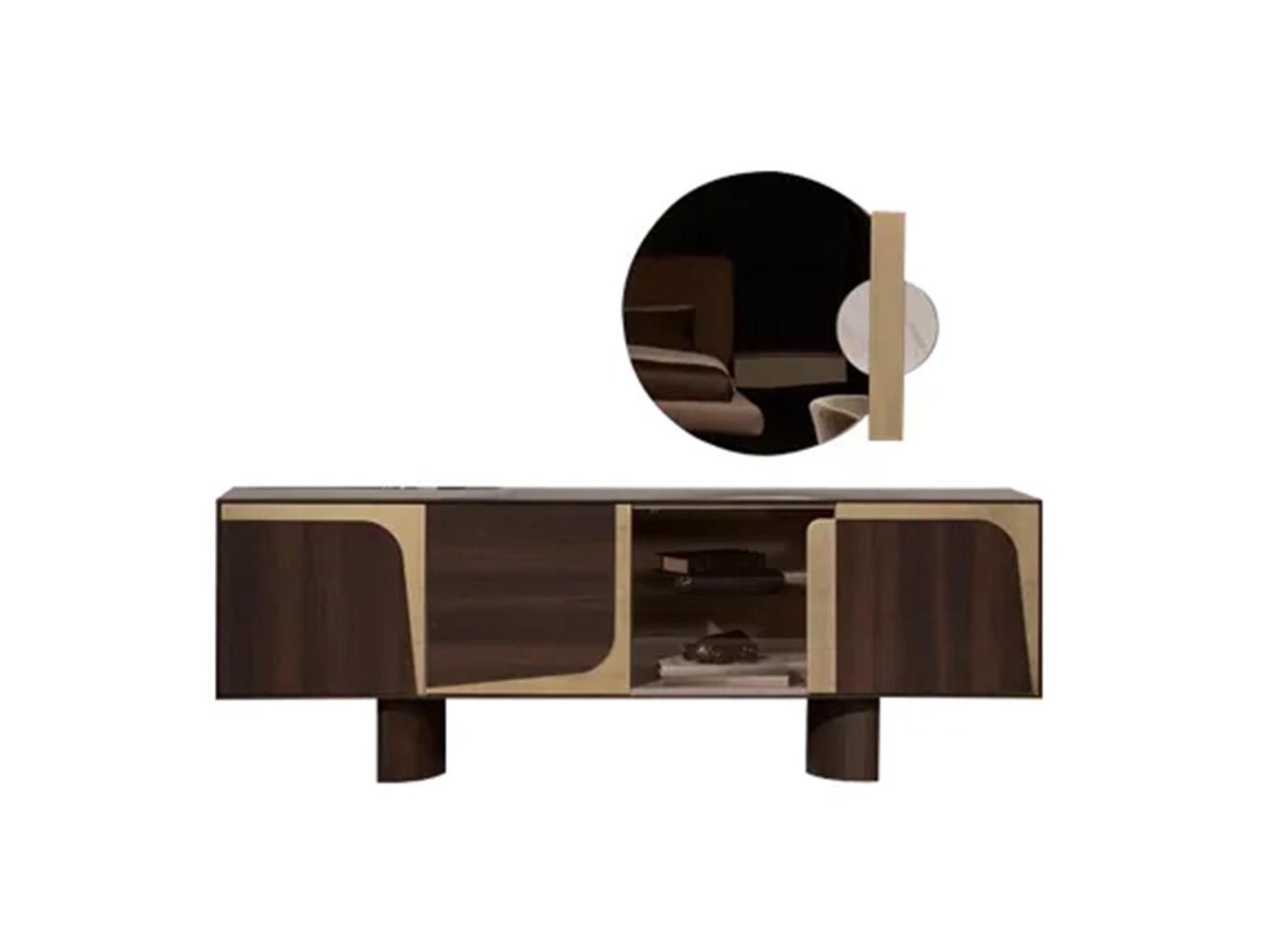 تميزي بأناقة اختياراتك في غرفة معيشتك مع كونسول مع مرآه لي مانس الرائع، فهو يعد إضافة أنيقة وعصرية لغرفة معيشتك، حيث يتميز بهيكل خشبي صلب لضمان المتانة بمزيج من لون الجوز والذهبي الممتزجان معا بكل سلاسة،كما يحتوي علي باب زجاجي فاخر شفاف يجعله قطعة فاخرة, صممت المرآة بنمط دائري مع تفاصيل جانبية لإضفاء لمسة من الأناقة،الكونسول يحتوي علي ارفف عديدة تضمن لك ترتيبا ملائما لاغراضك مما يجعلها خيارا مثاليا لإضافة لمسة من الفخامة إلى منزلك.
