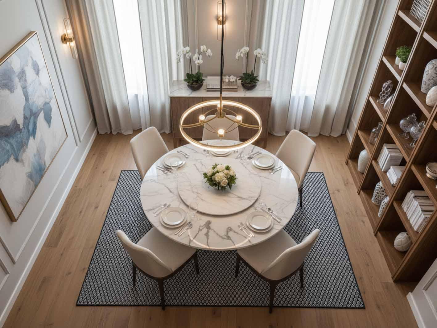 مارفيلا طاولة طعام دائرية من الرخام الصناعي – فخامة تتحدث عن نفسها