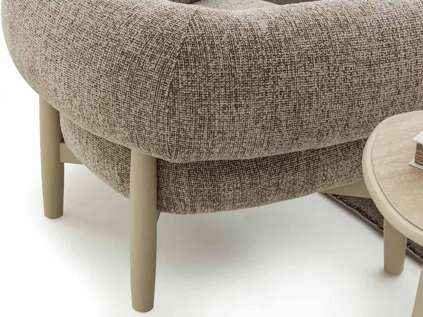 تم تنجيد الكنب بخامة البوكليه العصرية، وهي خامة ناعمة الملمس تمنح شعوراً مريحاً وتتميز بقدرتها على تحمل الاستخدام اليومي. هذا القماش من أحدث صيحات الديكور العالمي ويضفي لمسة عصرية دافئة على أجواء المنزل.