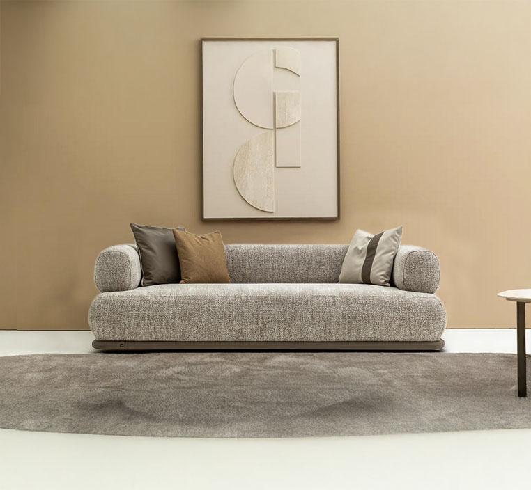 تم تغطية الكنب بخامة البوكليه العصرية، وهي خامة ناعمة الملمس تمنح إحساساً مريحاً وتتميز بقدرتها على تحمل الاستخدام اليومي. هذا القماش من أبرز صيحات الديكور الحديثة، ليضفي لمسة فاخرة معاصرة على منزلك.