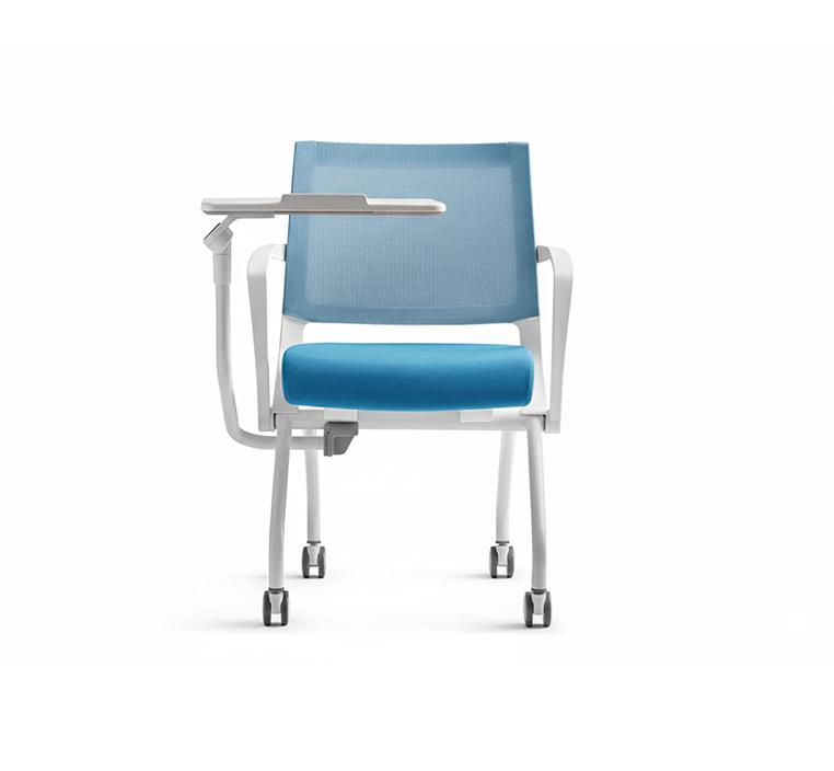 ولسهولة التنقل، يأتي الكرسي مزودًا بـ عجلات أمامية مرنة (Front Rolling Casters) تتيح حركة سلسة دون الحاجة إلى رفع الكرسي، بالإضافة إلى تصميم مدمج قابل للتكديس أفقيًا (Horizontal stacking) لتسهيل التخزين وتوفير المساحة بعد الاستخدام.