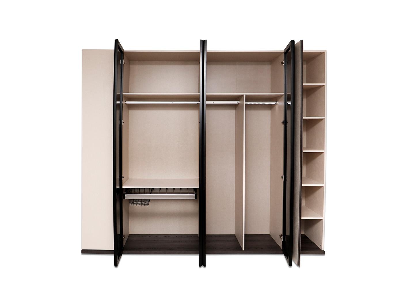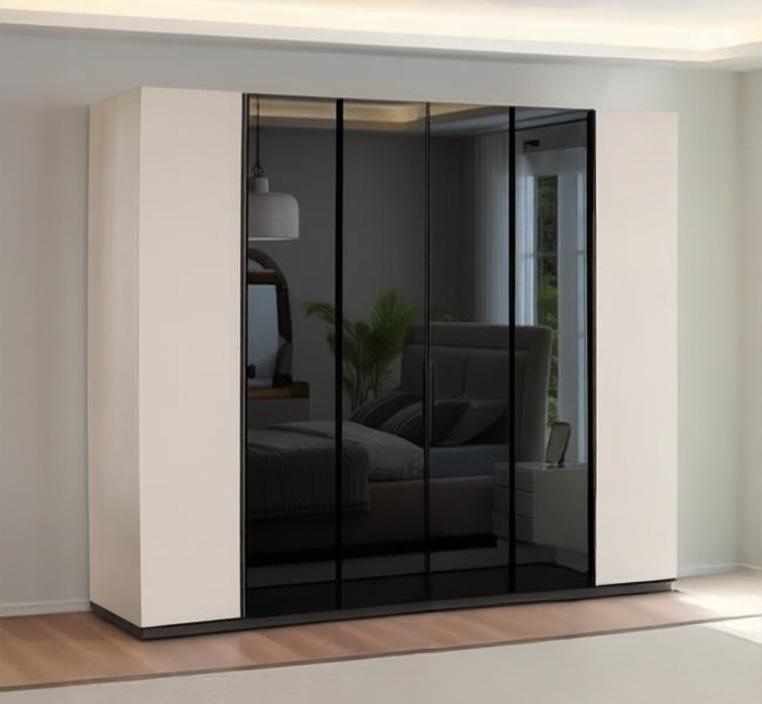 يتضمن التصميم أربعة أبواب من الزجاج الداكن، تضفي لمسة من الرقي وتزيد من عمق التصميم، وتوفر في الوقت نفسه لمسة من الخصوصية دون أن تفقد الغرفة إضاءتها الطبيعية. تم تصميم هذا الدولاب في تركيا، مما يضمن دقة التصنيع والعناية بالتفاصيل التي تعزز من جودته واستدامته.
