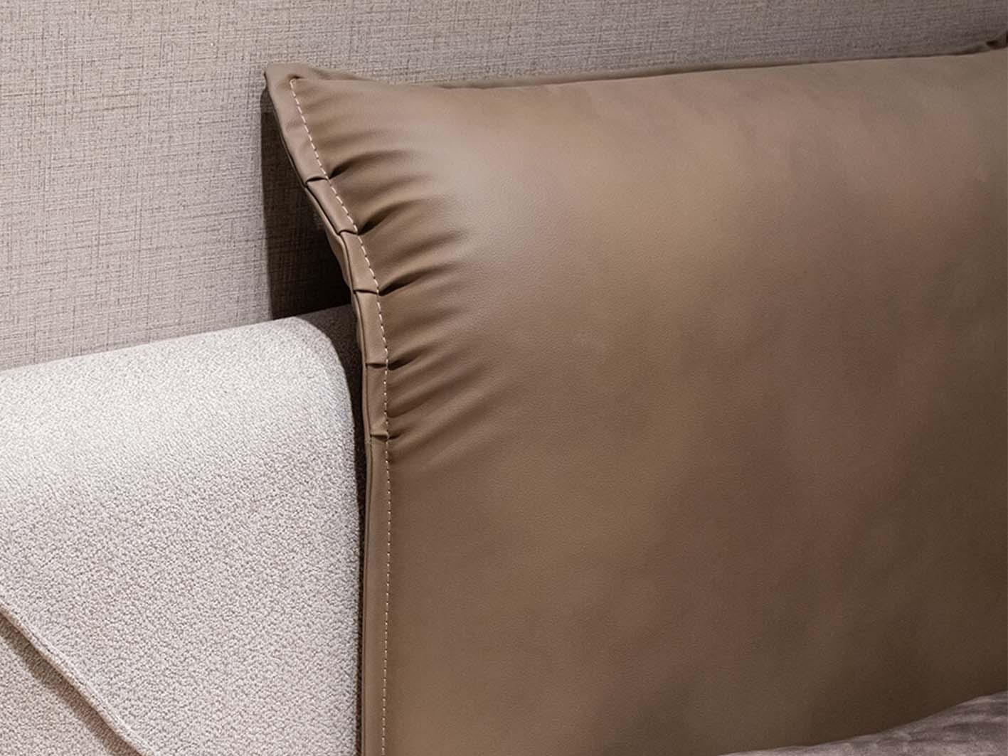 يجمع بين تنجيد الجلد والقماش ليمنحك لمسة راقية وراحة مثالية للنوم.