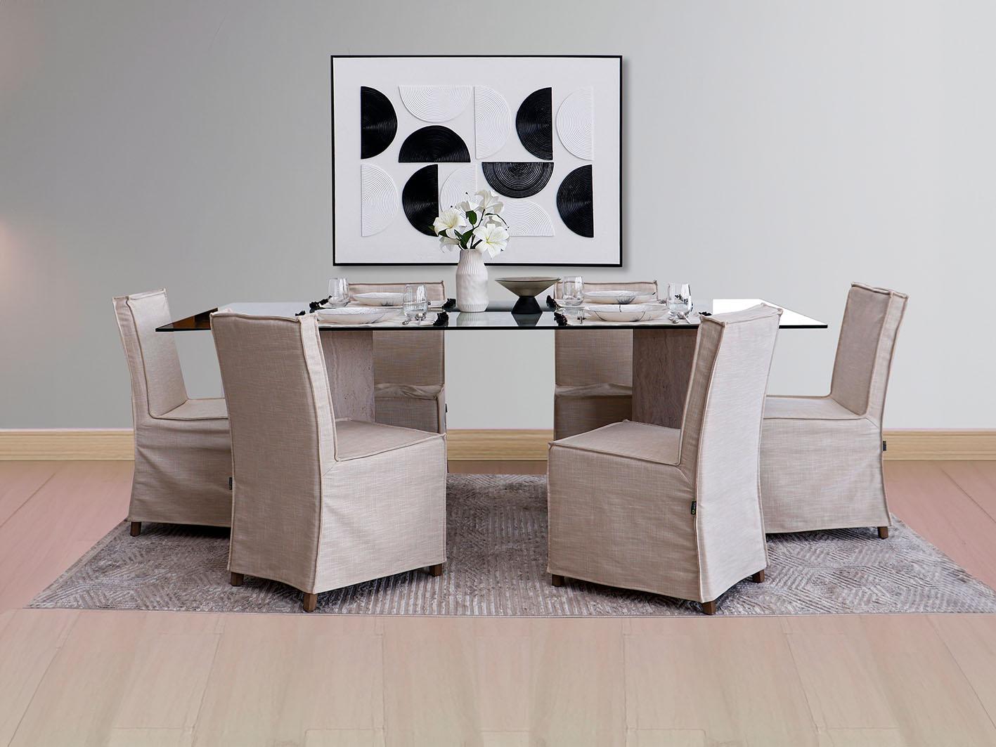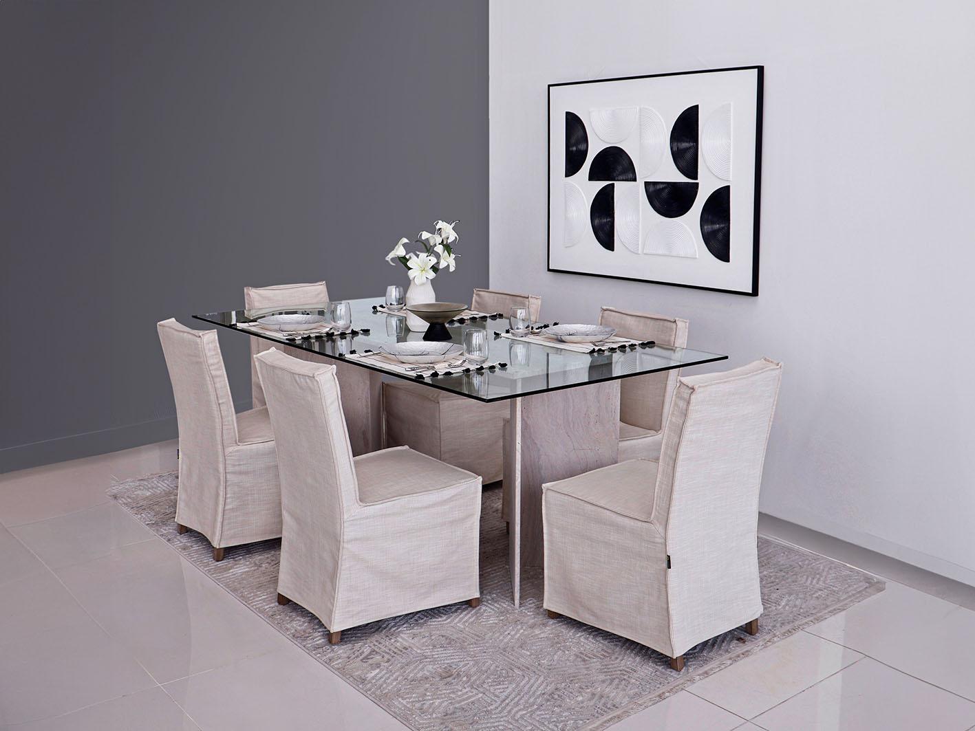 بمساحة تكفي لجلوس 6 أشخاص براحة تامة، فإن طاولة ليفربول تعد مثالية للجمعات العائلية أو المناسبات الخاصة. سواء كنت تخطط لعشاء هادئ مع العائلة أو تجمع مع الأصدقاء، فإن حجم الطاولة ومساحتها يوفران بيئة مثالية للتفاعل والتواصل. بالإضافة إلى ذلك، فإن السطح الزجاجي يضفي مظهرًا نقيًا ونظيفًا، مما يجعلها سهلة التنظيف والصيانة بعد أي مناسبة.