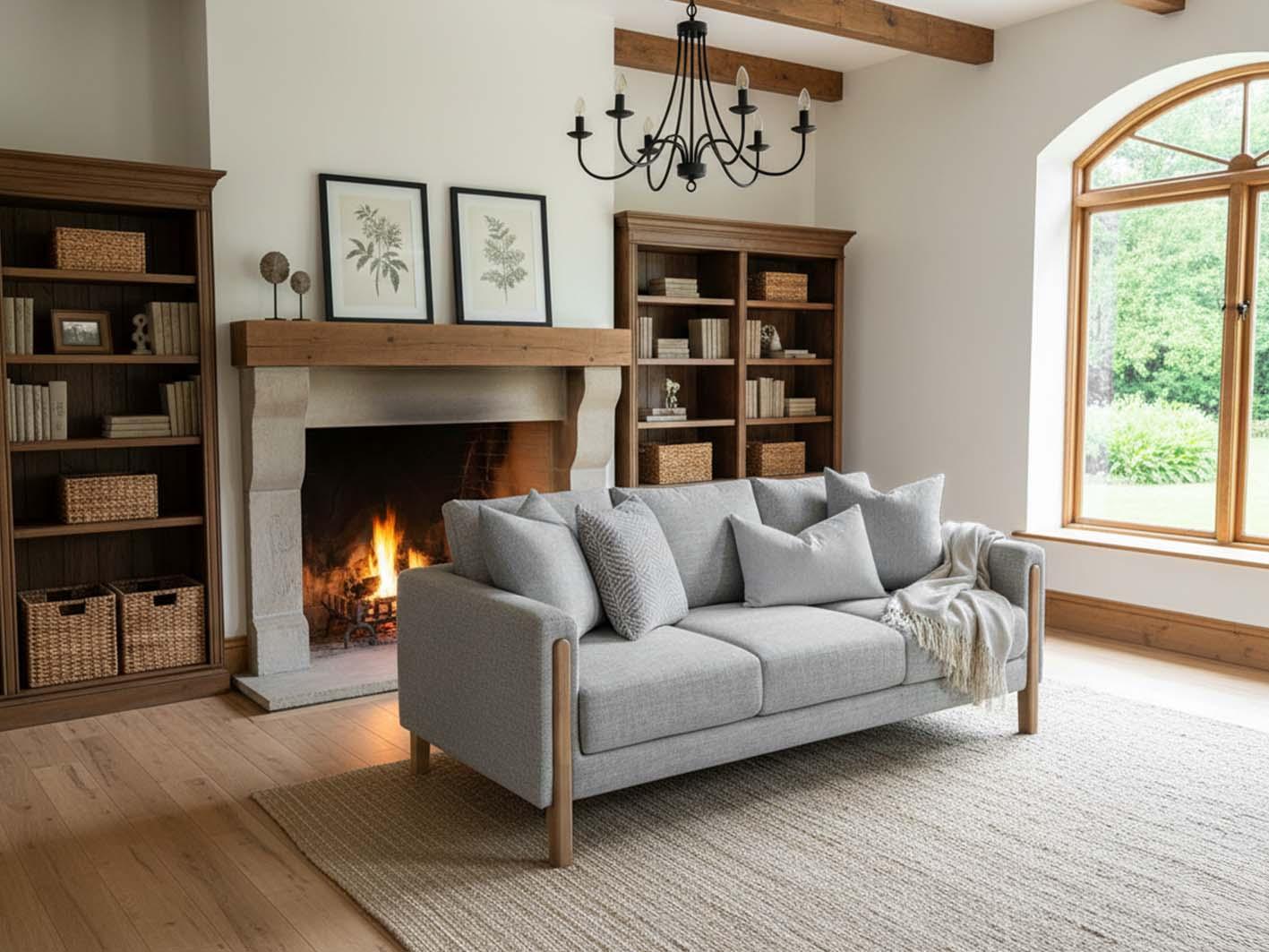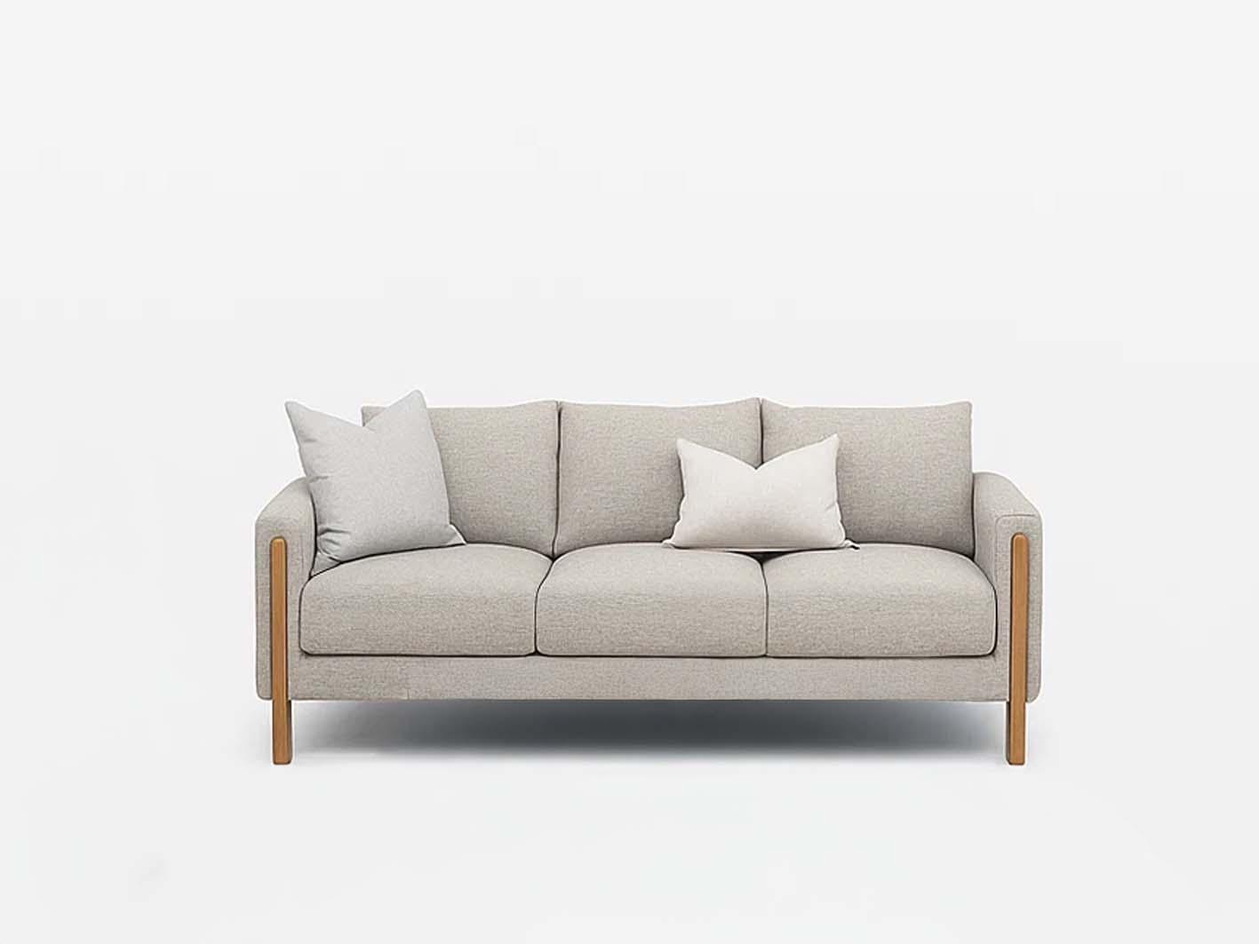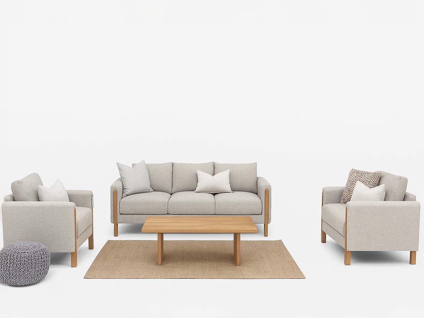 الإطار الخارجي للكنبة مصنوع من خشب طبيعي معالج بعناية ليمنحك ثباتًا عاليًا ومتانة تدوم لسنوات. تظهر التفاصيل الخشبية على الأرجل والجانبين بتشطيب أنيق يضفي لمسة دفء طبيعية على التصميم العصري.