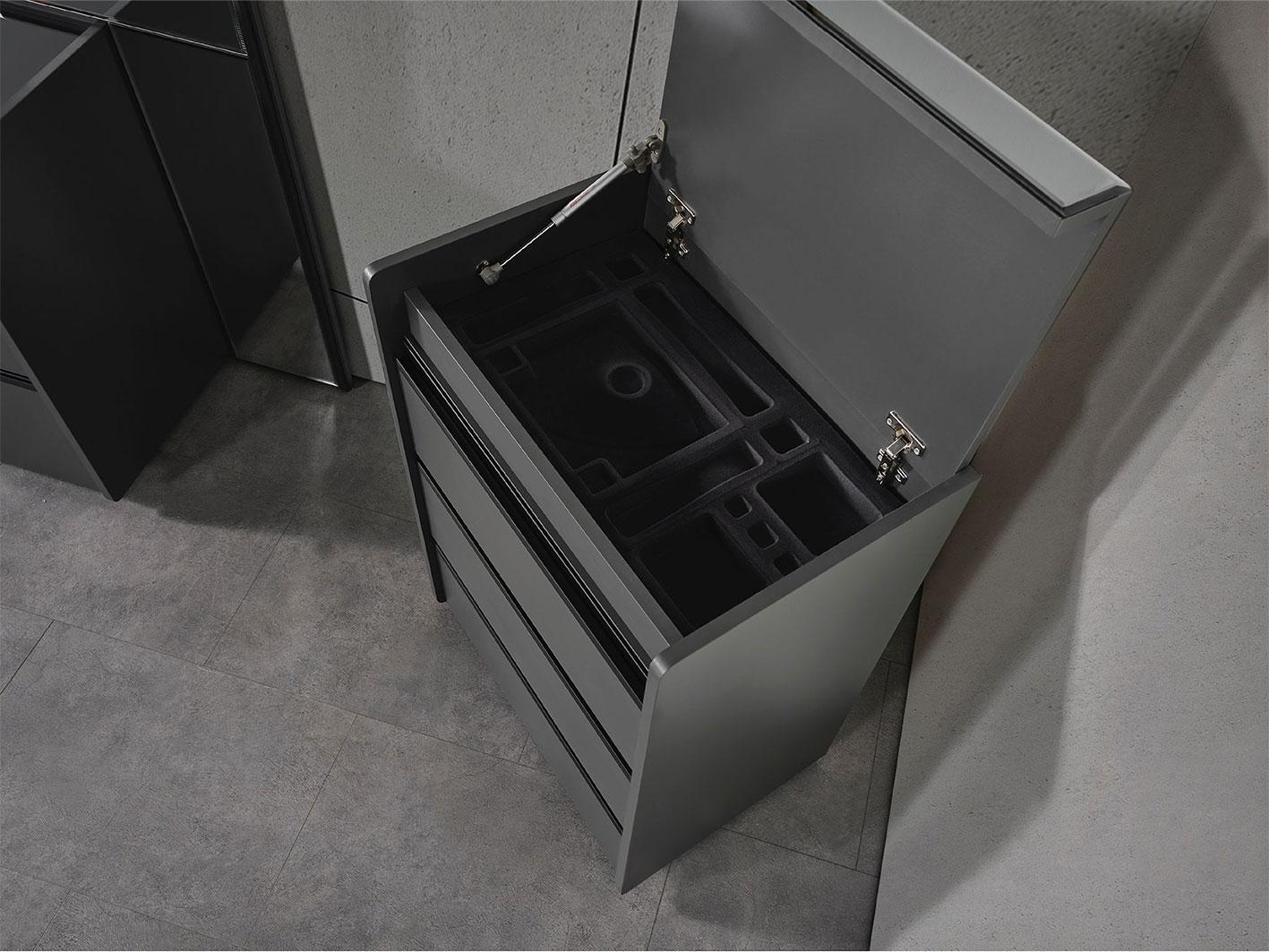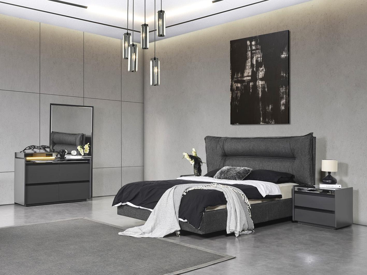 يبرز اللون رمادي داكن مائل للأسود الأنيق المدمج مع الخشب الطبيعي تفاصيل التصميم الفاخر، مما يضفي لمسة من الفخامة والرقي على غرفة النوم. سواء كنت تبحث عن غرفة توفر الراحة أو تعكس الذوق الكلاسيكي الممزوج بلمسات عصرية، فإن هذه الغرفة تلبي تطلعاتك.
